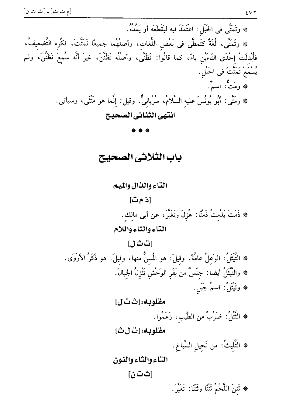 [ث ت ن] ثَتِنَ اللَّحْمُ ثَتْنًا وثَتَنًا: تَغَيَّرَ.