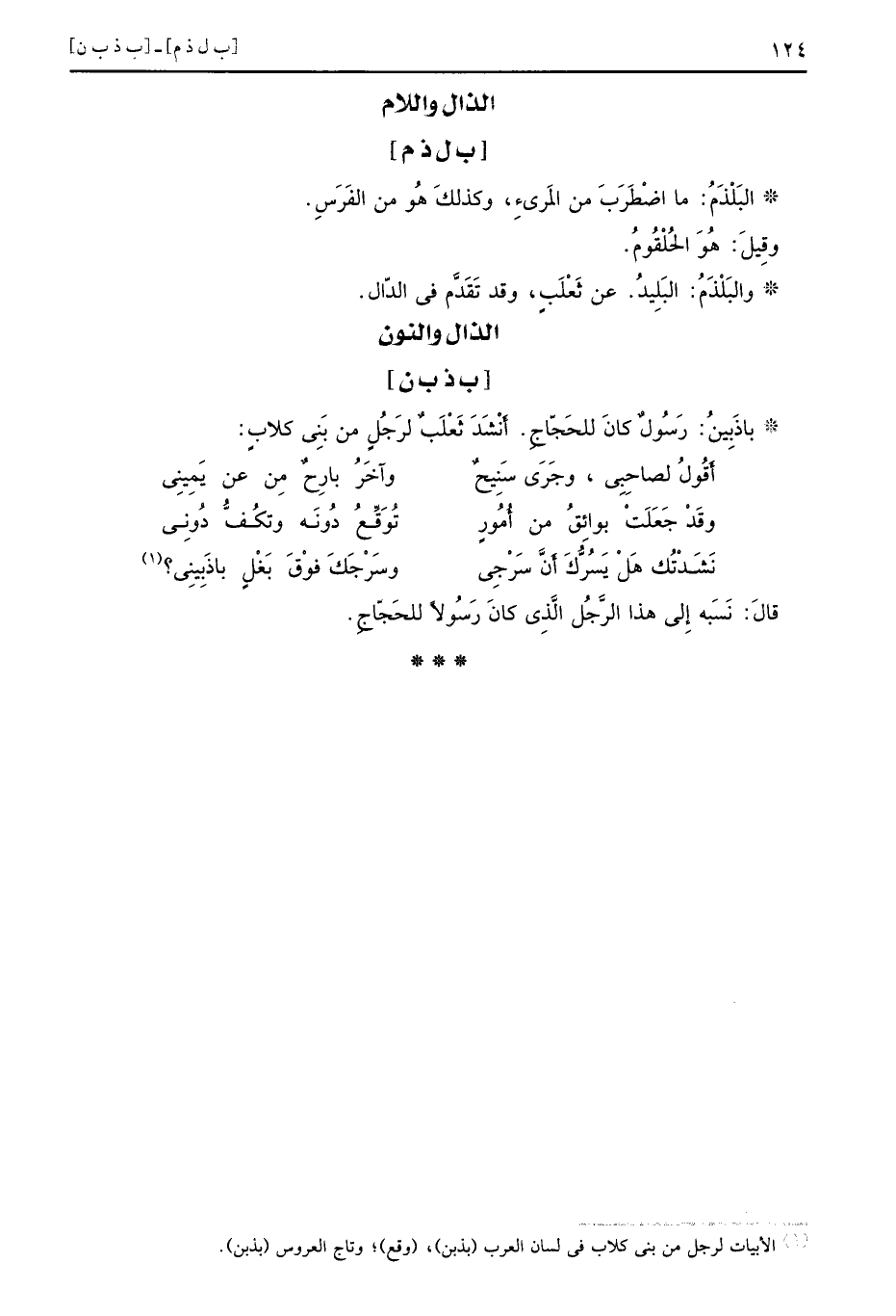 [ب ذ ب ن] باذَبِينُ رَسُولٌ كانَ للحَجّاجِ أَنْشَدَ ثَعْلَبٌ لرَجُلٍ من بَنِي كلابٍ