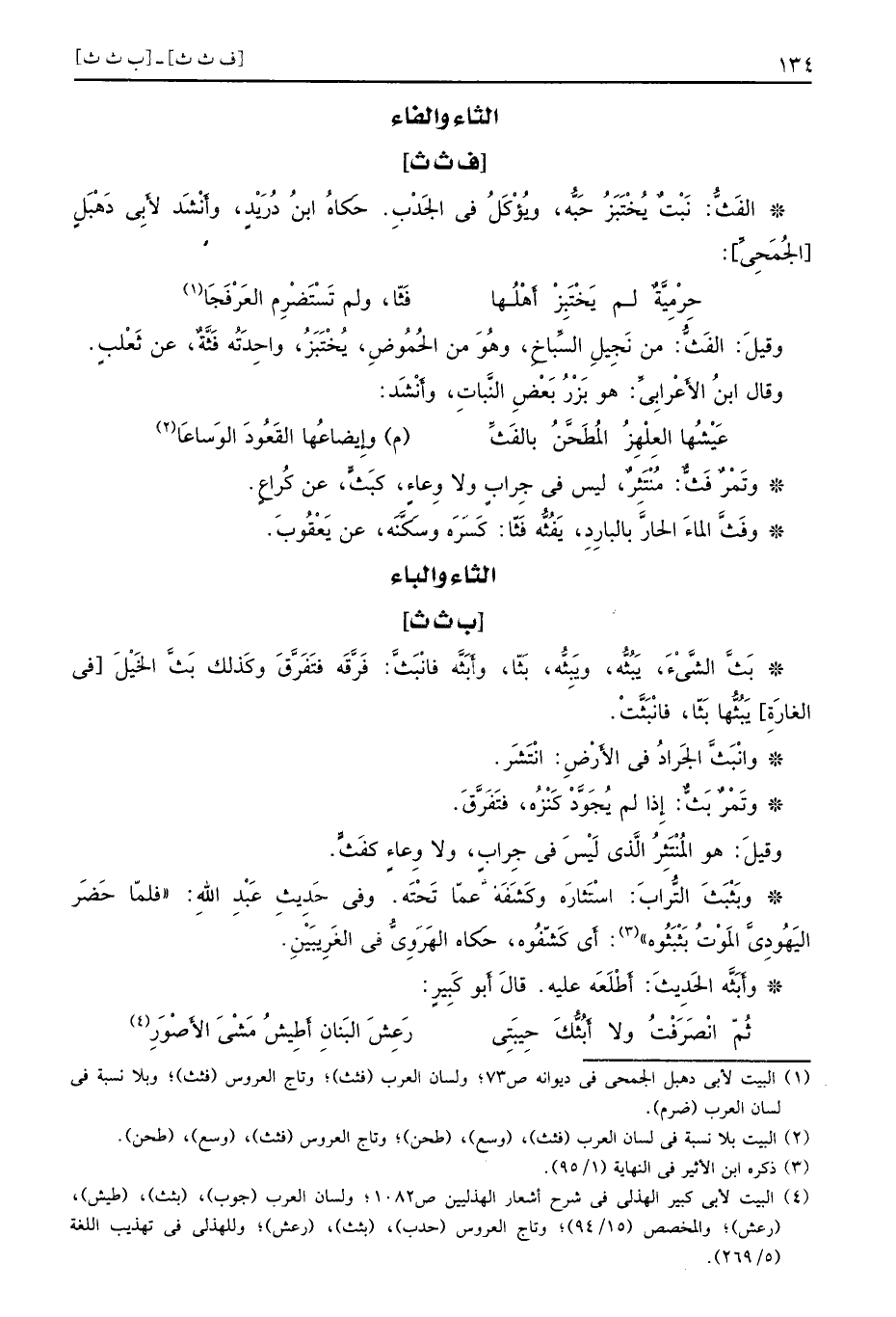 [ف ث ث] الفَثُّ نَبْتٌ يُخْتَبَزُ حَبُّه ويُؤْكَلُ في الجَدْبِ حَكاهُ ابنُ دُرَيْدٍ وأَنْشَد لأَبِي دَهْبَلٍ الجُمَحِيِّ