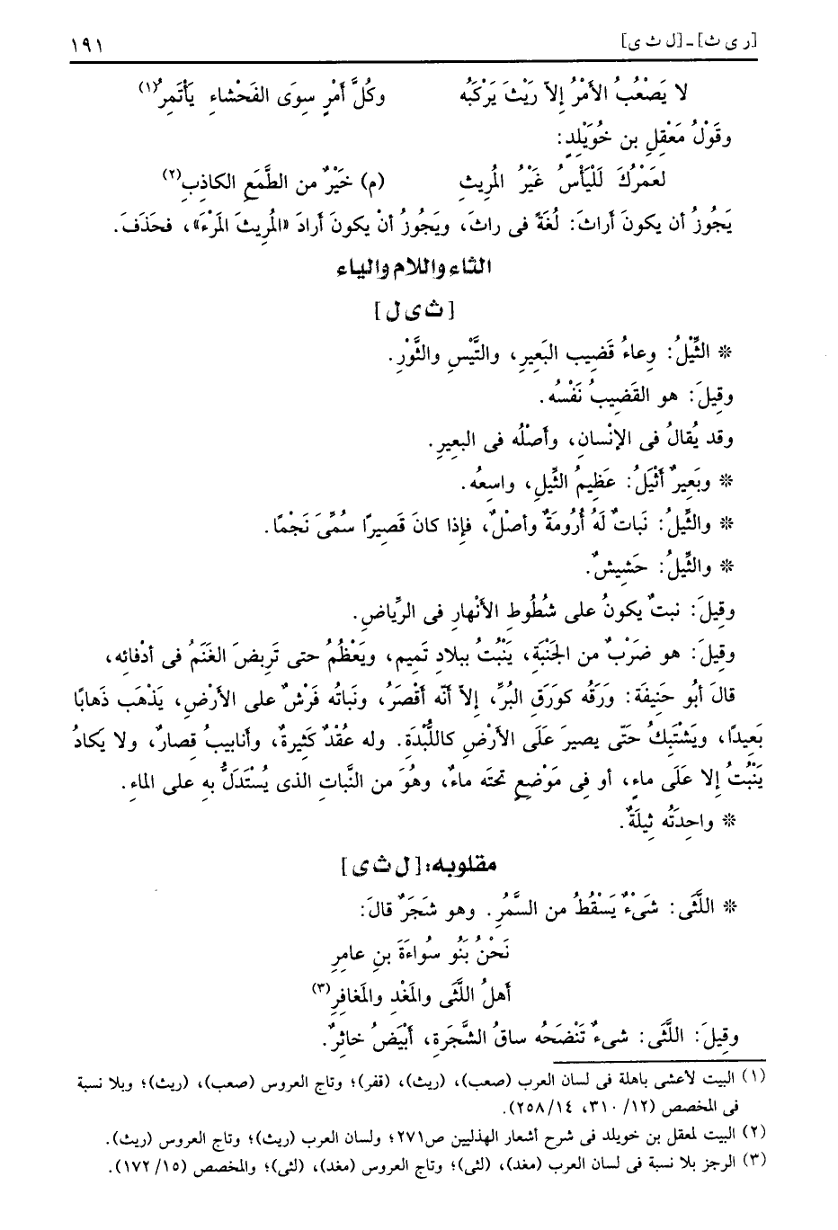 (الثاء واللام والياء)