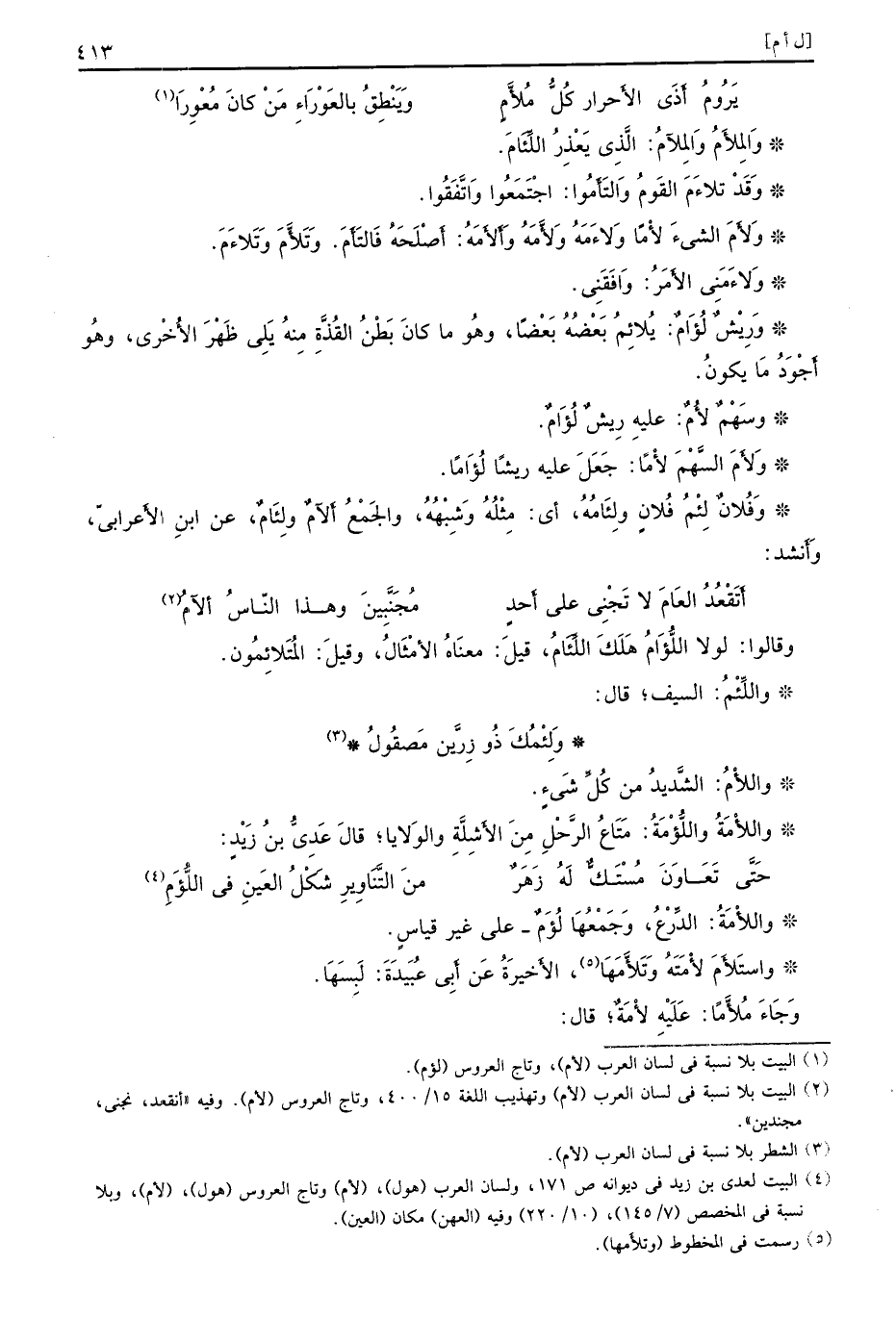 واللأْمُ الشَّديدُ من كُلِّ شَيءٍ واللأْمَةُ واللُّؤْمَةُ مَتَاعُ الرَّحْلِ مِنَ الأَشِلَّةِ والوَلايا قالَ عَدِيُّ بنُ زَيْدٍ