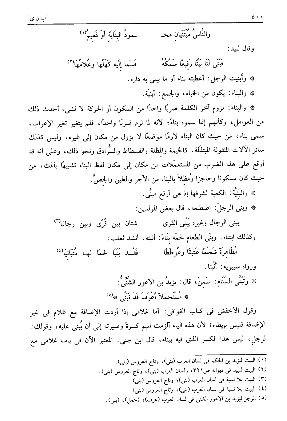 ورواه سيبويه أَنْبتا وتَبَنَّى السَنَام سَمِنَ قال يزيدُ بن الأعور الشَّنْيُّ