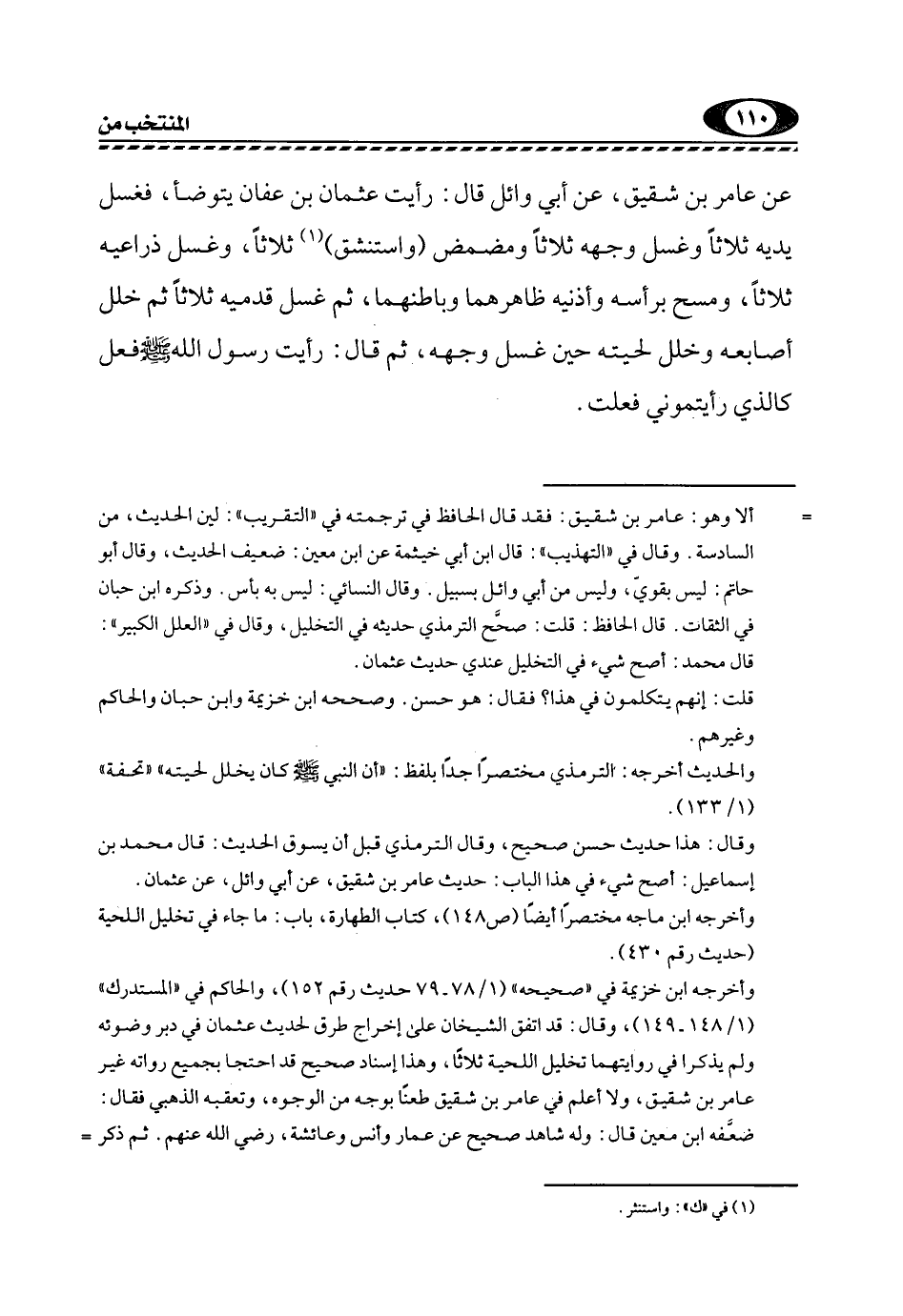 وقال: هذا حديث حسن صحيح، وقال الترمذي قبل أن يسوق الحديث: قال محمد بن إسماعيل: أصح شيء في هذا الباب: حديث عَامِرِ بْنِ شَقِيقٍ، عَنْ أَبِي وائل، عن عثمان.