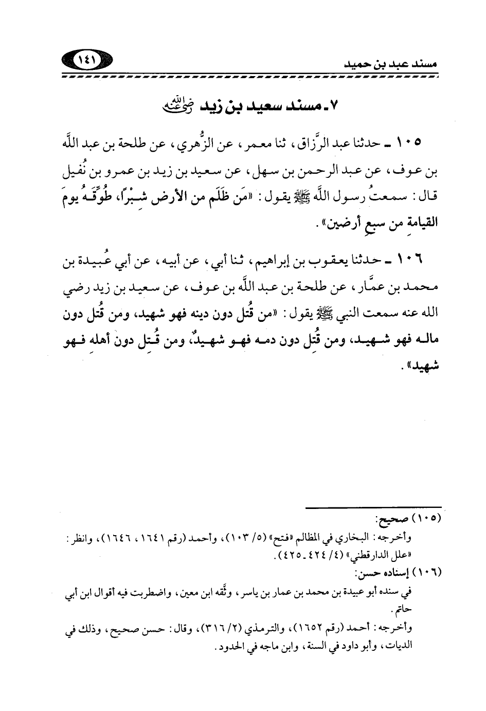 7- مُسْنَدُ سَعِيدِ بْنِ زَيْدٍ, رَضِيَ اللَّهُ عَنْهُ:
