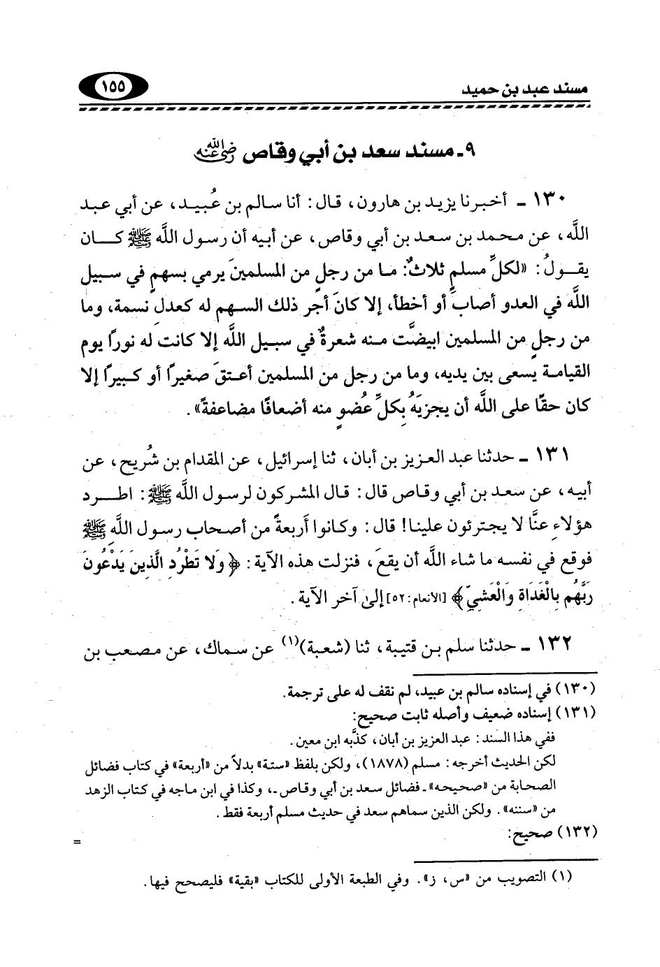 9- مُسْنَدُ سَعْدِ بْنِ أَبِي وَقَّاصٍ, رَضِيَ اللَّهُ عَنْهُ: