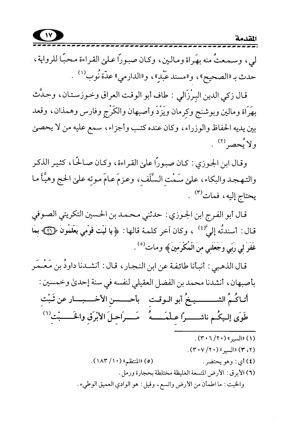 لي، وسمعت منه بهراة ومالين، وكان صبورا على القراءة محبا للرواية، حدث بـ"الصحيح"، و"مسند عبد"، و"الدارمي" عدة نُوب1.