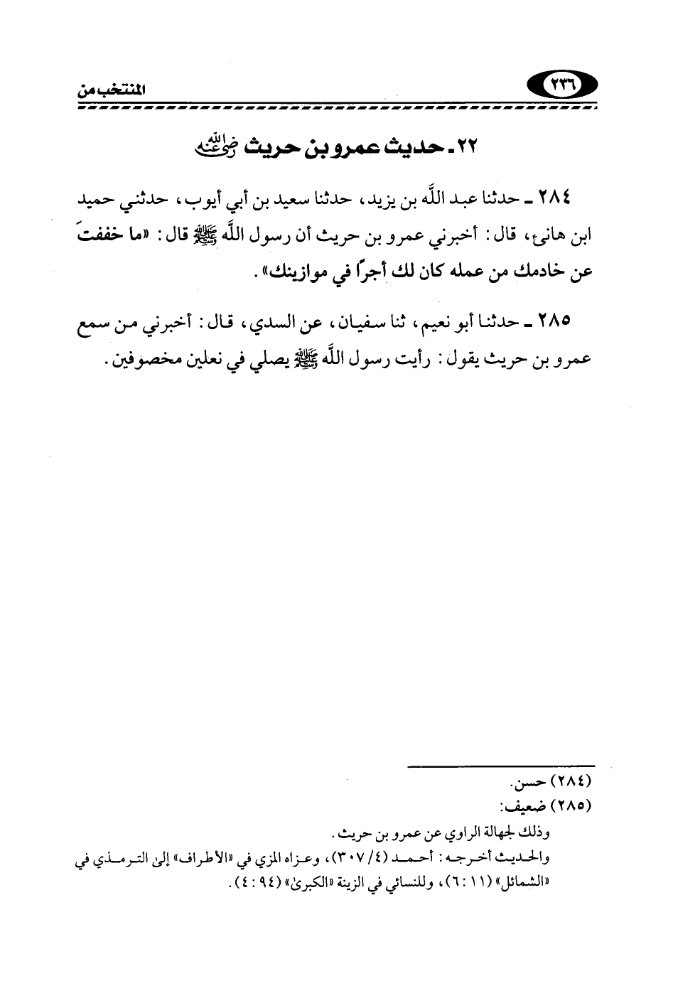 22- حَدِيثُ عَمْرِو بْنِ حُرَيْثٍ, رَضِيَ اللَّهُ عَنْهُ:
