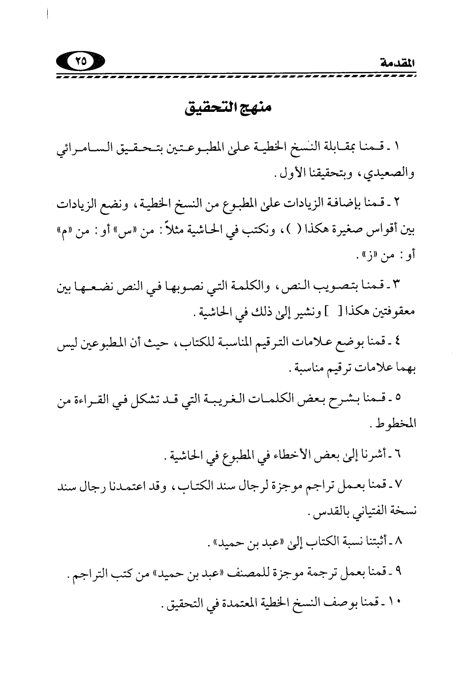 1- قمنا بمقابلة النسخ الخطية على المطبوعتين بتحقيق السامرائي والصعيدي، وبتحقيقنا الأول.