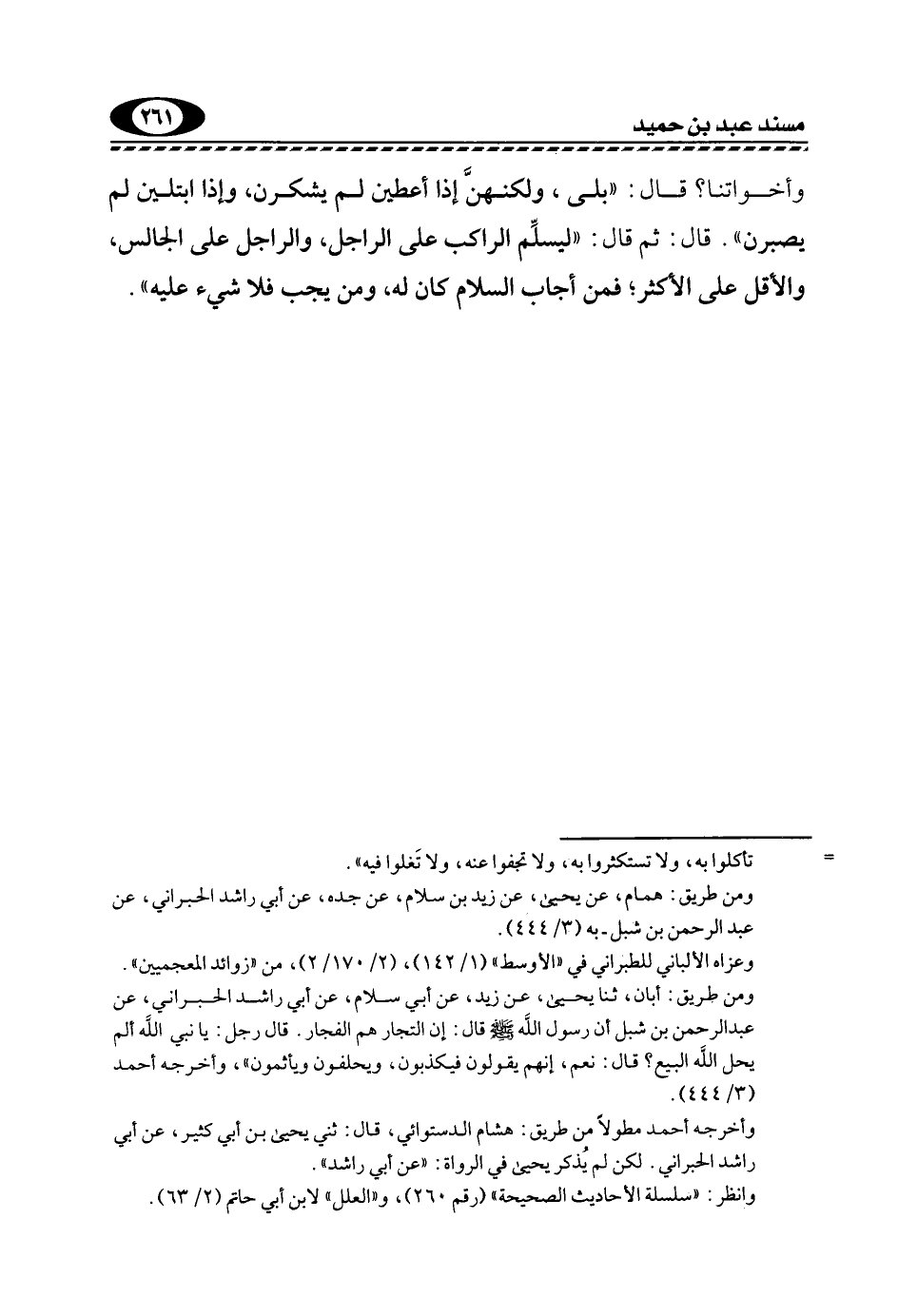 ومن طريق: همام، عن يحيى، عَنْ زَيْدِ بْنِ سَلَّامٍ، عَنْ جده، عن أبي راشد الحبراني، عن عبد الرحمن بن شبل, به "3/ 444".