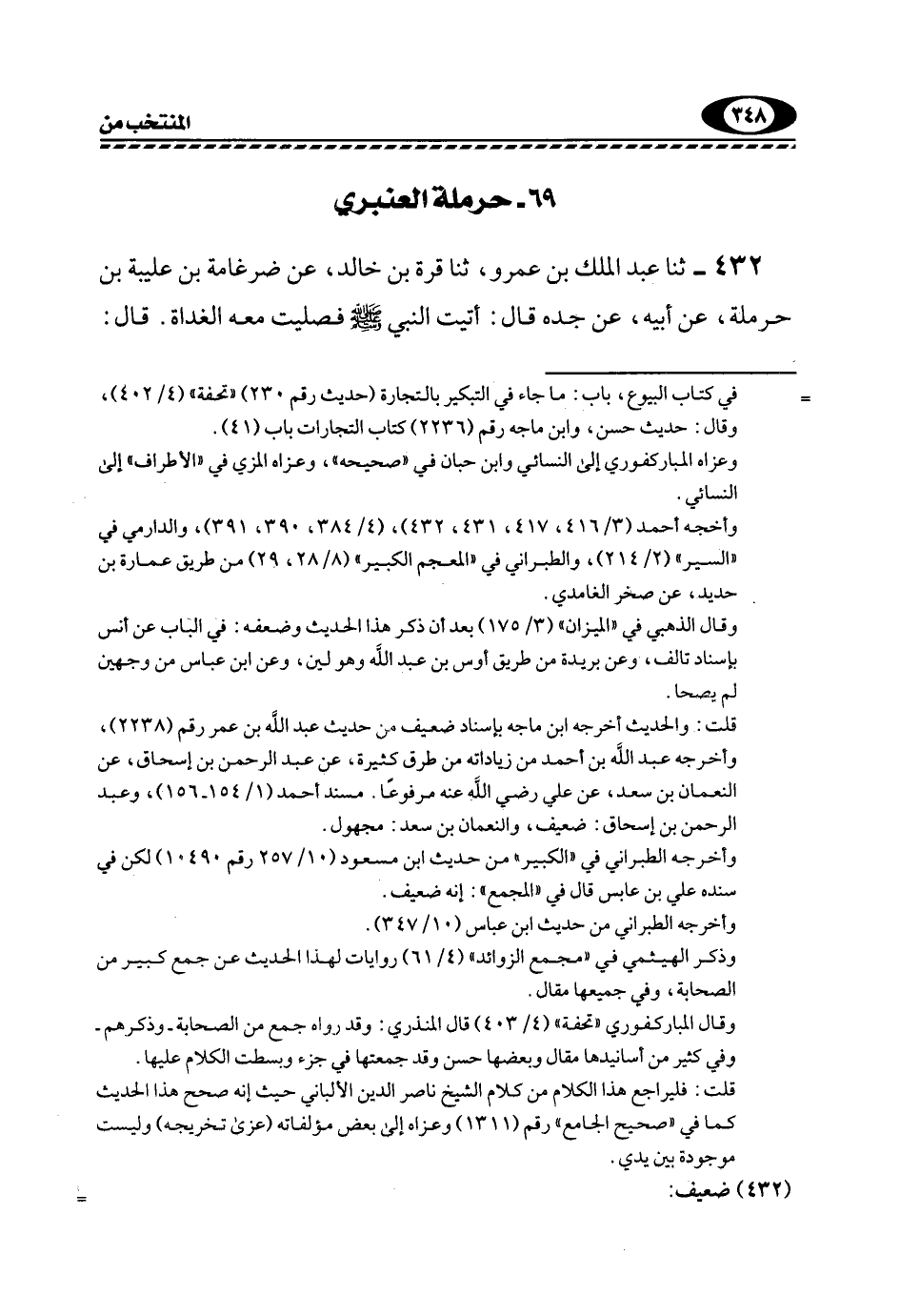 432- ثَنَا عَبْدُ الْمَلِكِ بْنُ عَمْرٍو، ثَنَا قُرَّةُ بْنُ خَالِدٍ، عَنْ ضِرْغَامَةَ بْنِ عُلَيْبَةَ بْنِ حَرْمَلَةَ، عَنْ أَبِيهِ، عَنْ جَدِّهِ قَالَ: أَتَيْتُ النَّبِيَّ -صَلَّى اللهُ عَلَيْهِ وَسَلَّمَ- فَصَلَّيْتُ مَعَهُ الغداة. قال: