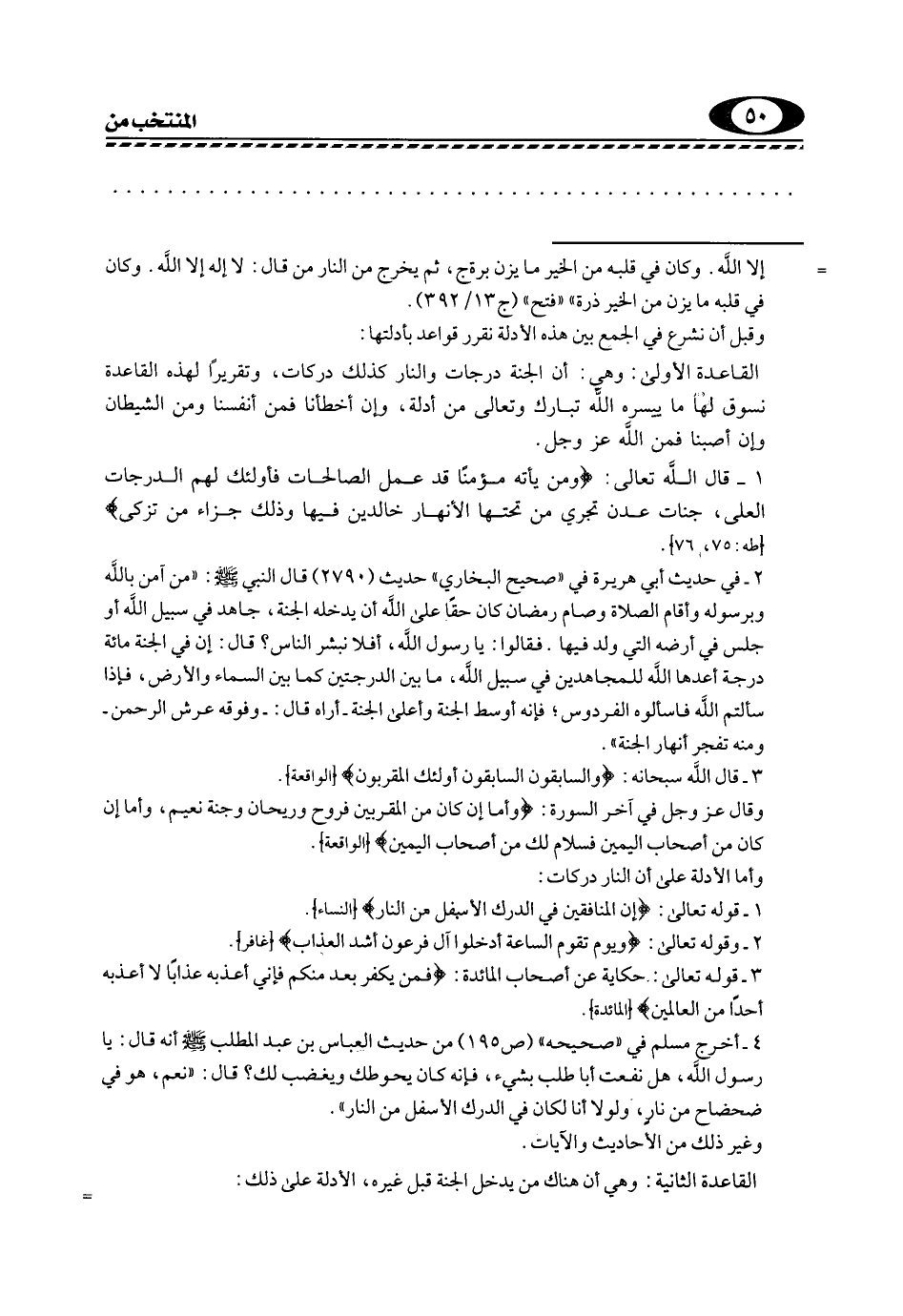 القاعدة الأولى: وهي أن الجنة درجات والنار كذلك دركات، وتقريرا لهذه القاعدة نسوق لها ما ييسره الله -تبارك وتعالى- من أدلة، وإن أخطأنا فمن أنفسنا ومن الشيطان, وإن أصبنا فمن الله عز وجل: