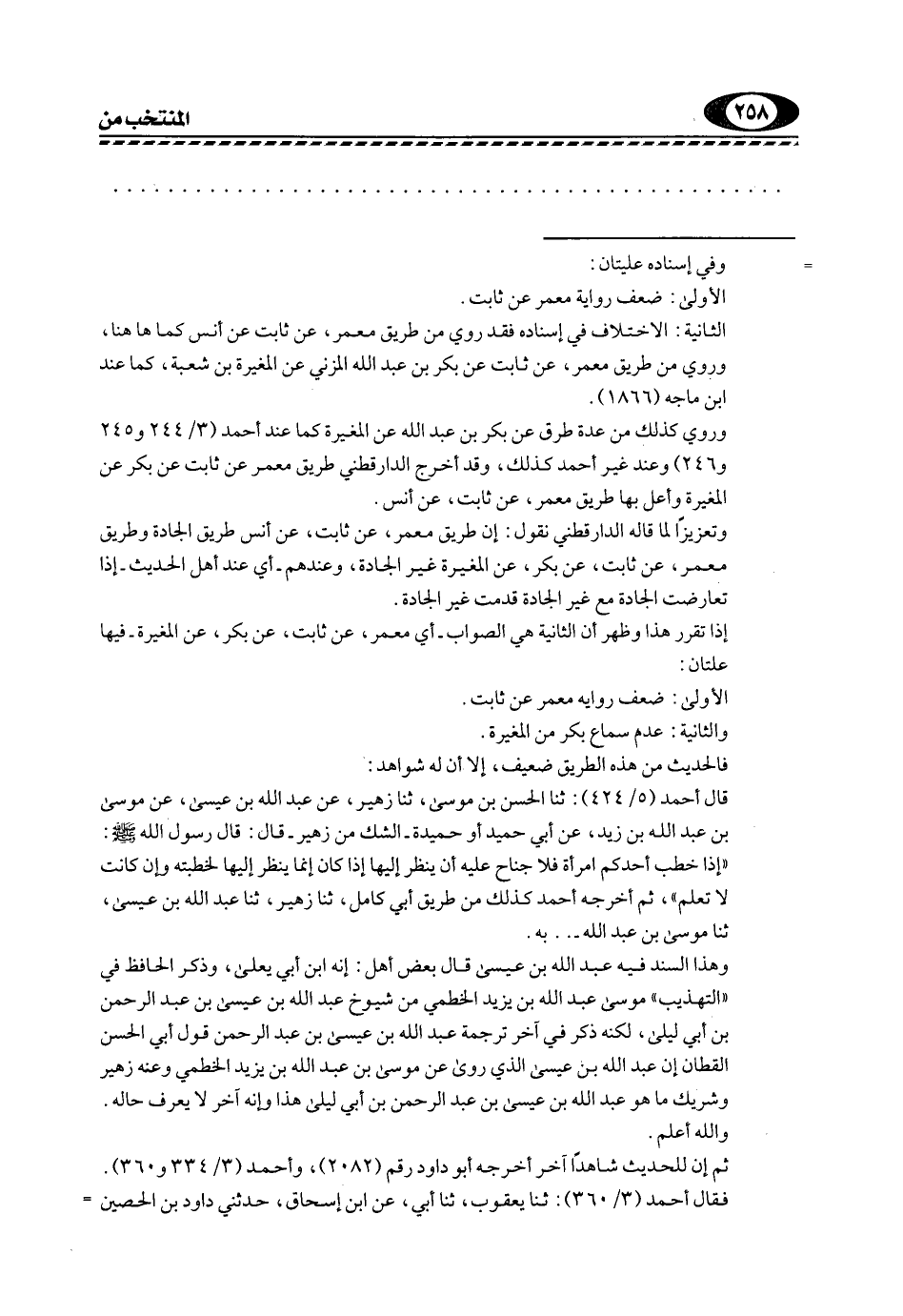 الثانية: الاختلاف في إسناده فقد روي من طريق مَعْمَرٌ، عَنْ ثَابِتٍ عَنْ أَنَسٍ كما هاهنا، وروي من طريق معمر، عن ثابت عن بكر بن عبد الله المزني عن المغيرة بن شعبة، كما عند ابن ماجه "1866".