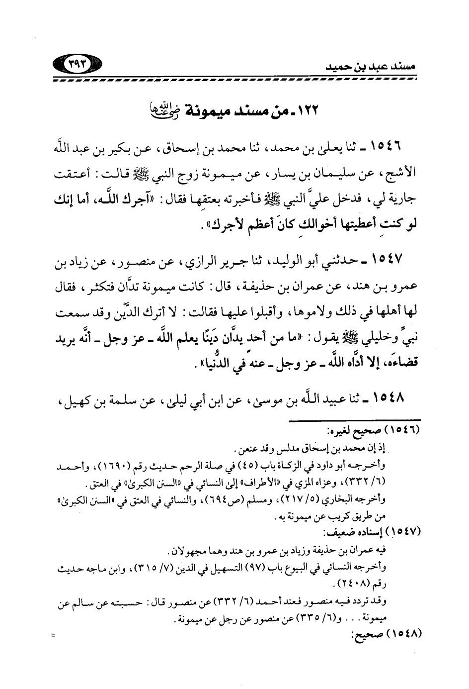 122- مِنْ مُسْنَدِ مَيْمُونَةَ رَضِيَ اللَّهُ عَنْهَا: