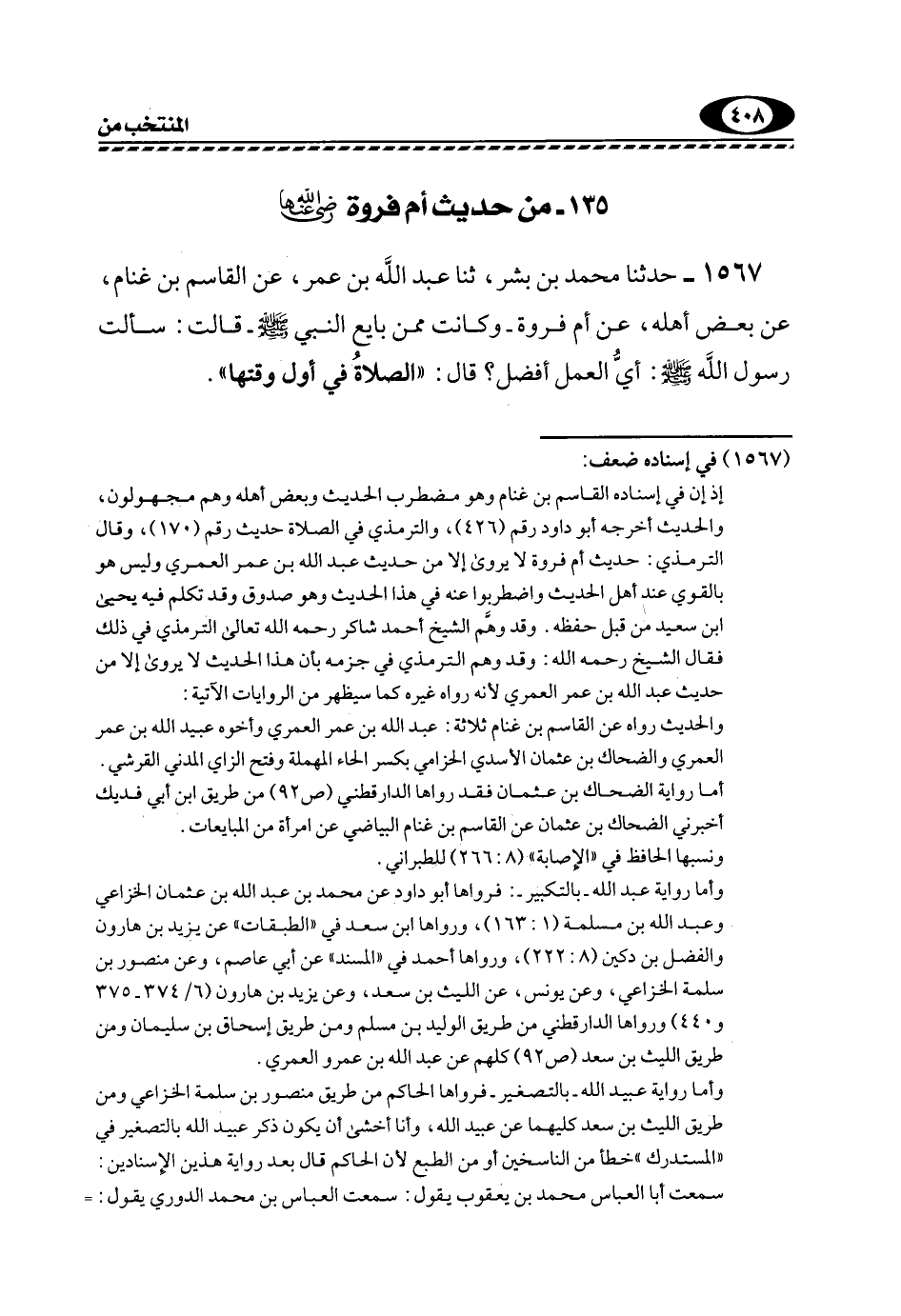 135- من حديث أم فروة رضي الله عنها: