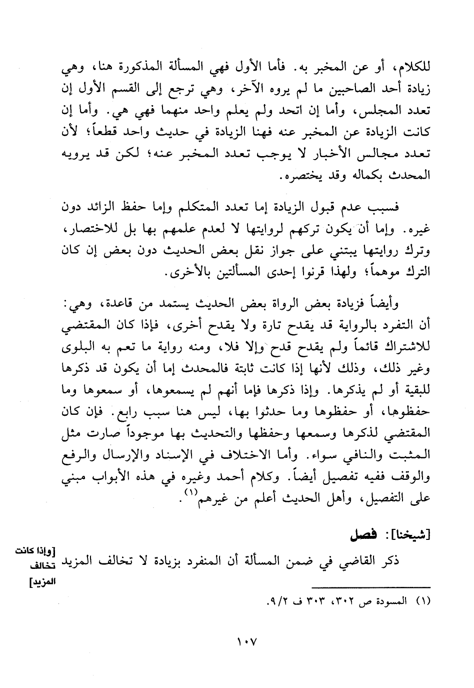 فسبب عدم قبول الزيادة إما تعدد المتكلم وإما حفظ الزائد دون غيره. وإما أن يكون تركهم لروايتها لا لعدم علمهم بها بل للاختصار وترك روايتها يبتني على جواز نقل بعض الحديث دون بعض إن كان الترك موهما ولهذا قرنوا إحدى المسألتين بالأخرى.