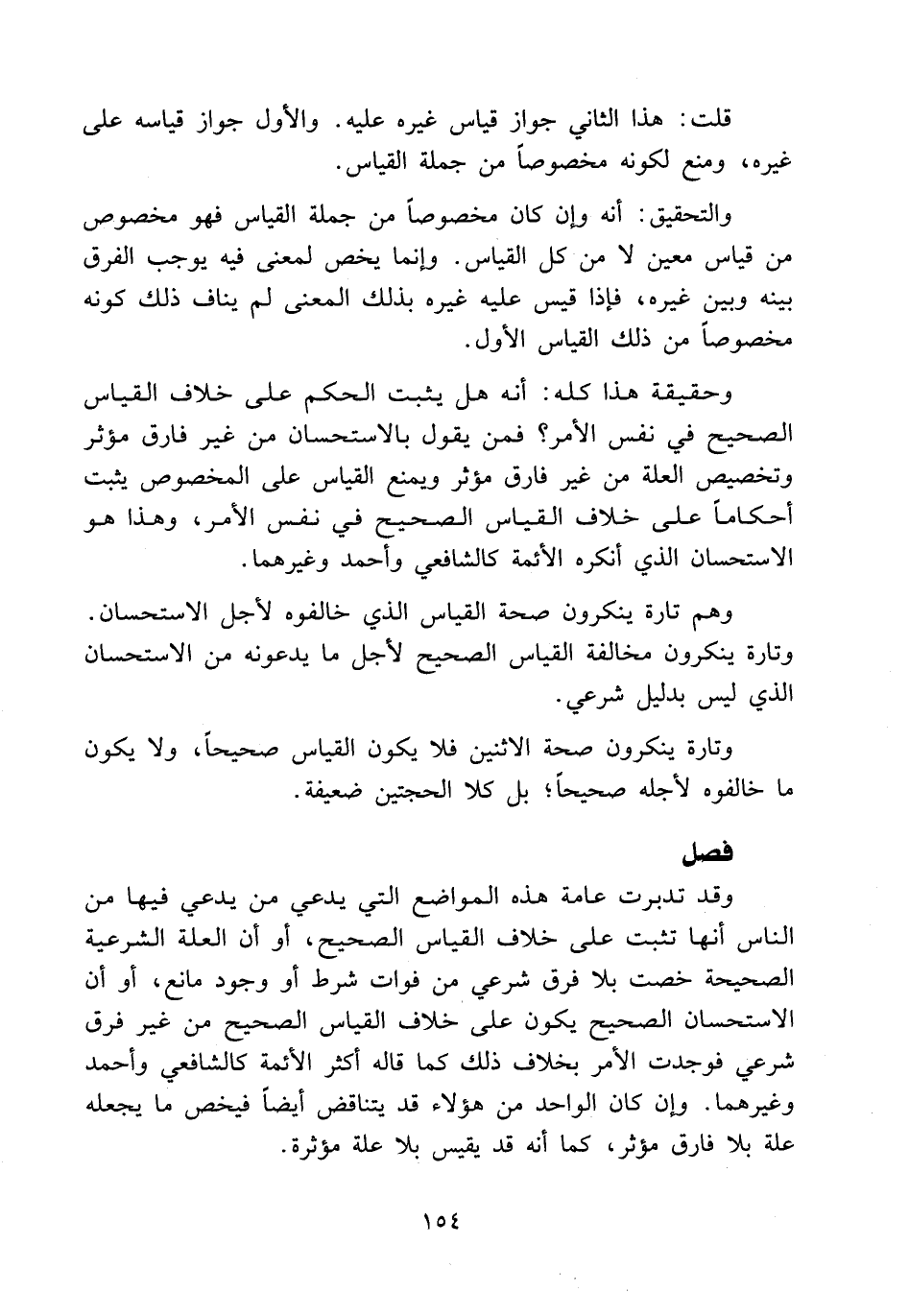 وحقيقة هذا كله: أنه هل يثبت الحكم على خلاف القياس الصحيح في نفس الأمر؟ فمن يقول بالاستحسان من غير فارق مؤثر وتخصيص العلة من غير فارق مؤثر ويمنع القياس على المخصوص يثبت أحكاما على خلاف القياس الصحيح في نفس الأمر، وهذا هو الاستحسان الذي أنكره الأئمة كالشافعي وأحمد وغيرهما.
