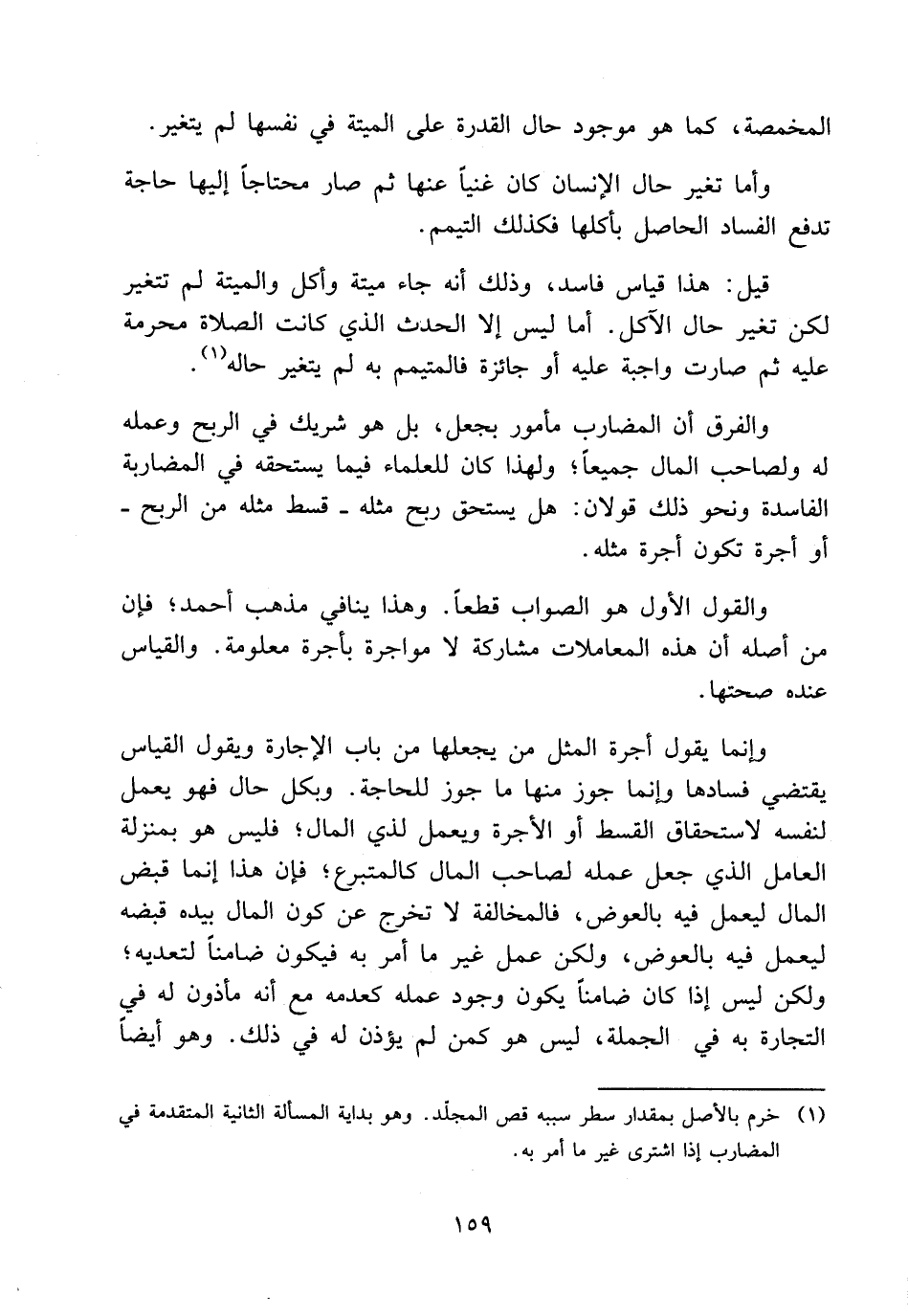 (1) خرم بالأصل بمقدار سطر سببه قص المجلد. وهو بداية المسألة الثانية المتقدمة في المضارب إذا اشترى غير ما أمر به.