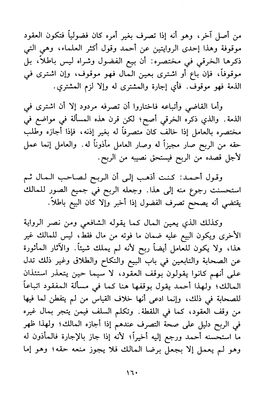 وقول أحمد: كنت أذهب إلى أن الربح لصاحب المال ثم استحسنت رجوع منه إلى هذا. وجعله الربح في جميع الصور للمالك يقتضي أنه يصحح تصرف الفضول إذا أخبر وإلا كان البيع باطلا.