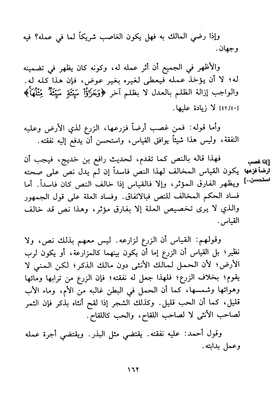 فهذا قاله بالنص كما تقدم، لحديث رافع بن خديج، فيجب أن يكون القياس المخالف لهذا النص فاسدا إن لم يدل نص على صحته ويظهر الفارق المؤثر، وإلا فالقياس إذا خالف النص كان فاسدا. أما فساد الحكم المخالف للنص فبالاتفاق. وفساد العلة على قول الجمهور والذي لا يرى تخصيص العلة إلا بفارق مؤثر، وهذا نص قد خالف القياس.