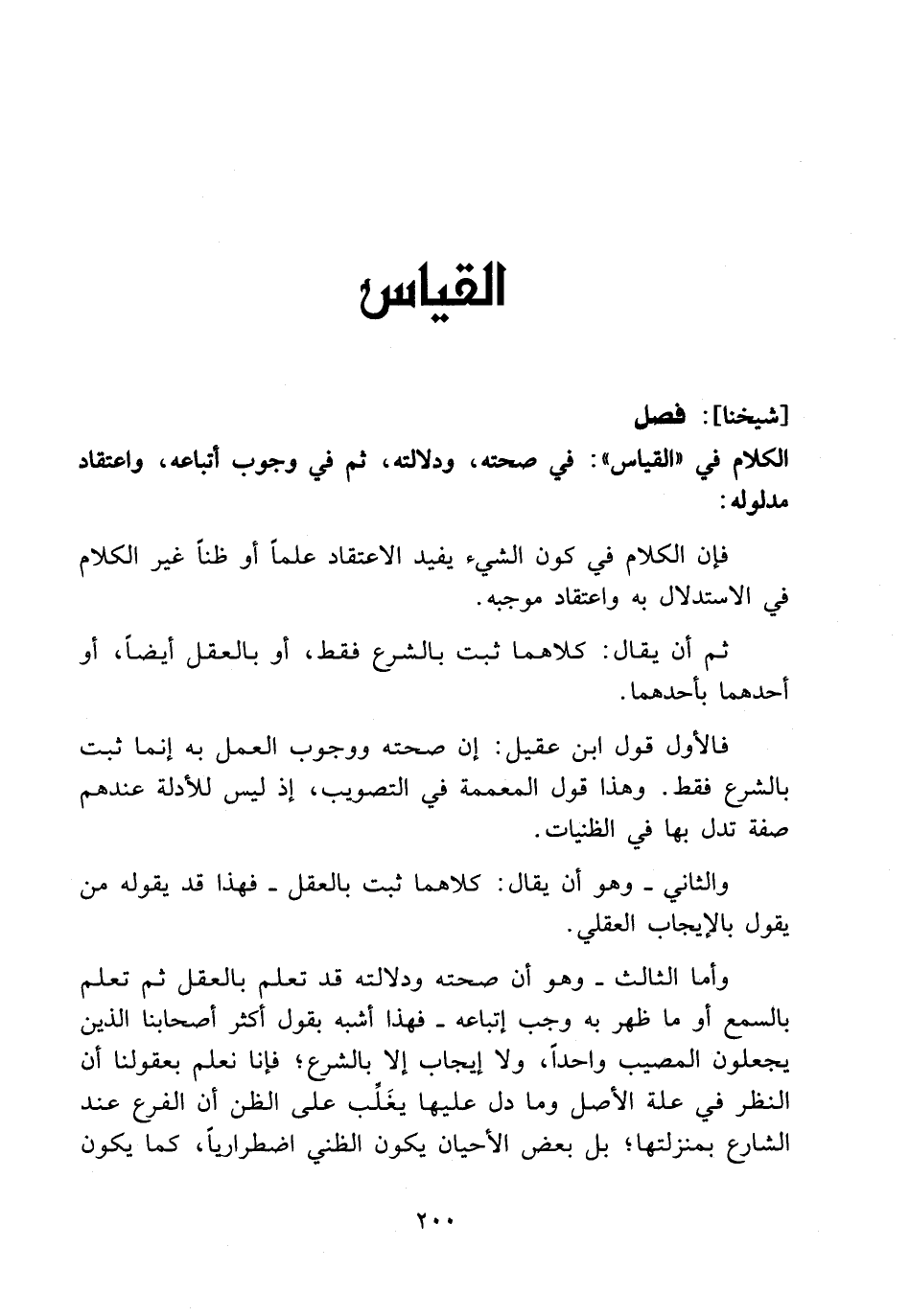 الكلام في «القياس» : في صحته، ودلالته، ثم في وجوب اتباعه، واعتقاد مدلوله: