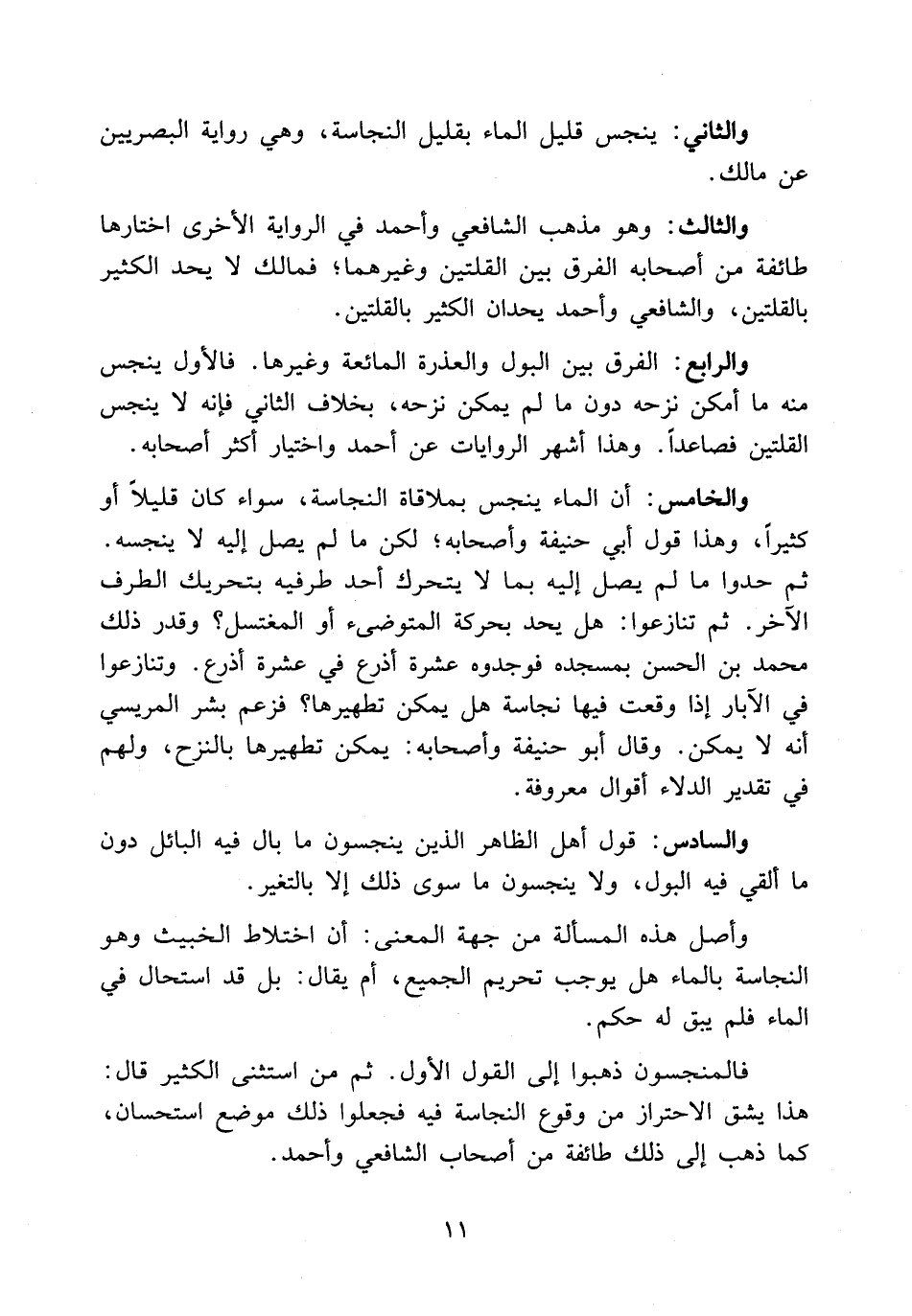 وأصل هذه المسألة من جهة المعنى: أن اختلاط الخبيث وهو النجاسة بالماء هل يوجب تحريم الجميع، أم يقال: بل قد استحال في الماء فلم يبق له حكم.