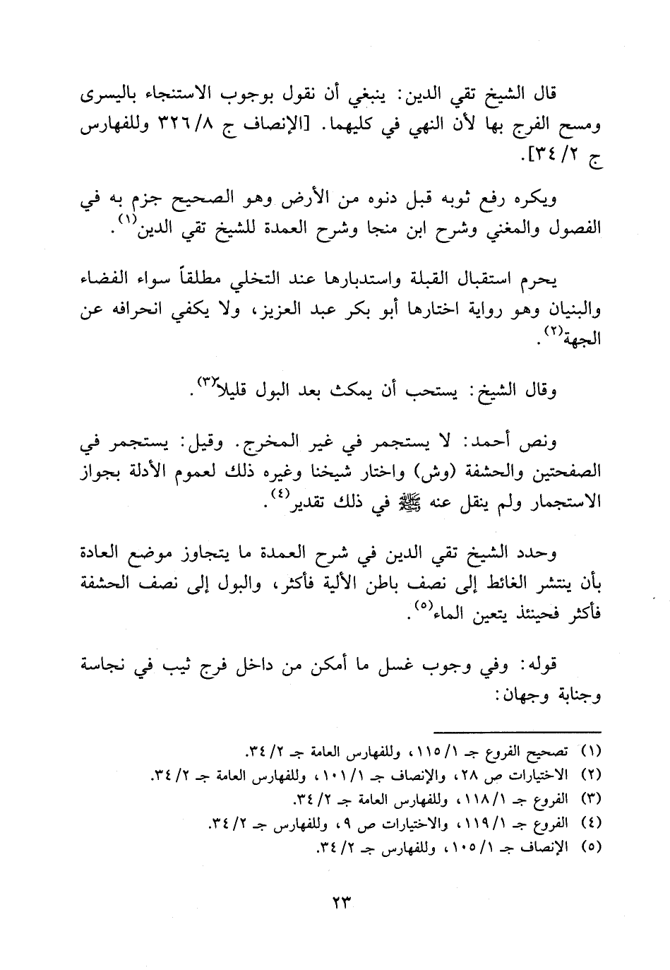 قال الشيخ تقي الدين: ينبغي أن نقول بوجوب الاستنجاء باليسرى ومسح الفرج بها لأن النهي في كليهما: الإنصاف (8/ 326) وللفهارس (2/ 34) .