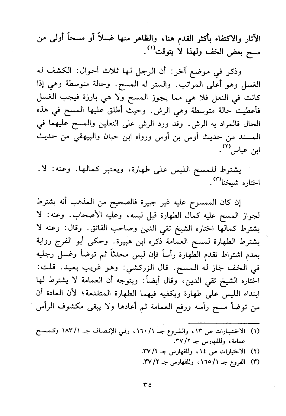(1) الاختيارات (13) والفروع (1/ 160) وفي الإنصاف (1/ 183) وكمسح عمامة وللفهارس العامة (2/ 37) .
