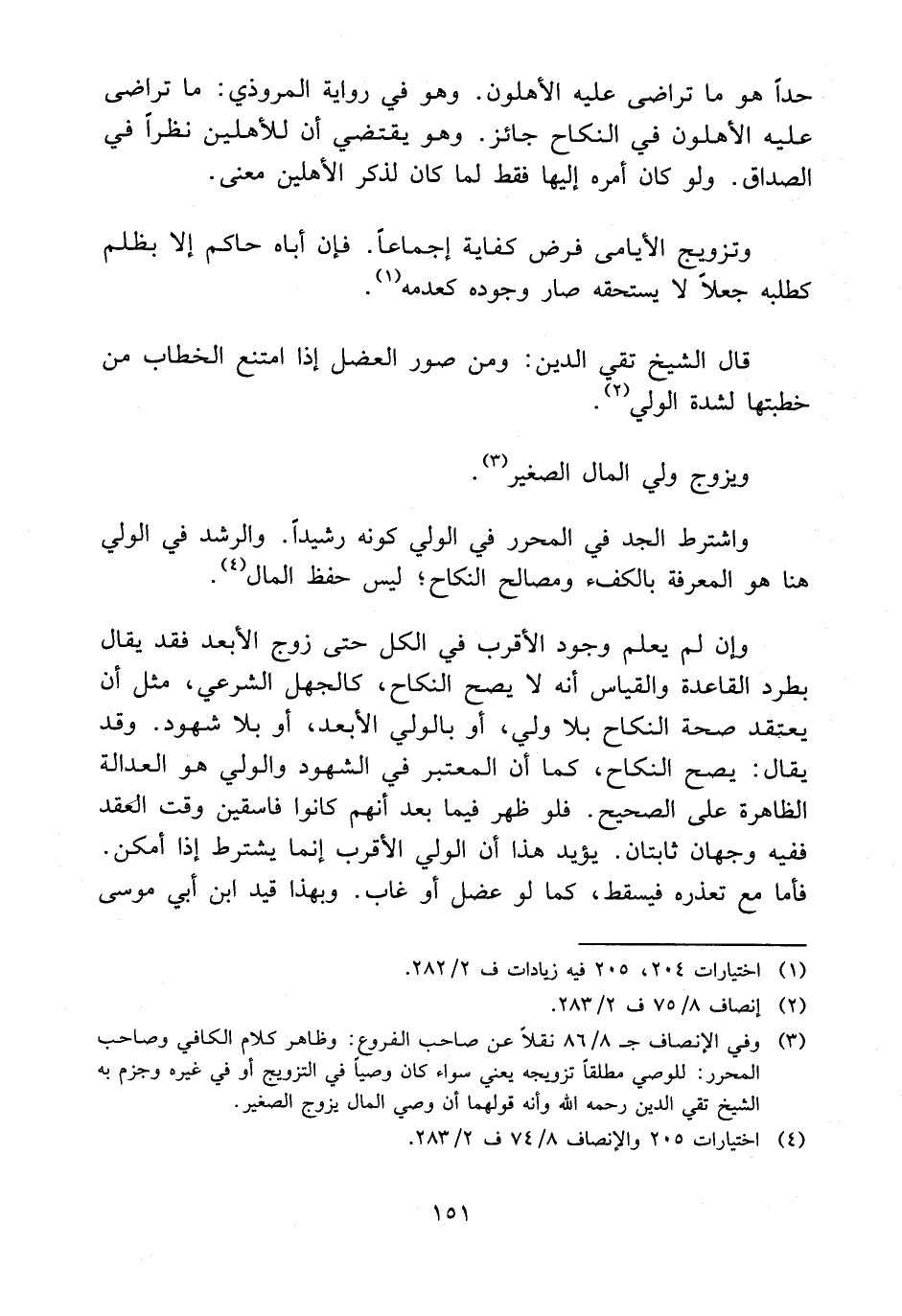 (4) اختيارات 205 والإنصاف 8/ 74 ف 2/ 283.