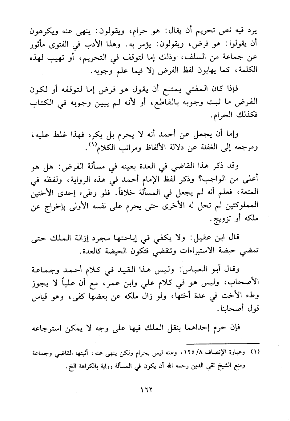 (1) وعبارة الإنصاف 8/ 125، وعنه ليس بحرام ولكن ينهى عنه، أثبتها القاضي وجماعة ومنع الشيخ تقي الدين رحمه الله أن يكون في المسألة رواية بالكراهة إلخ.