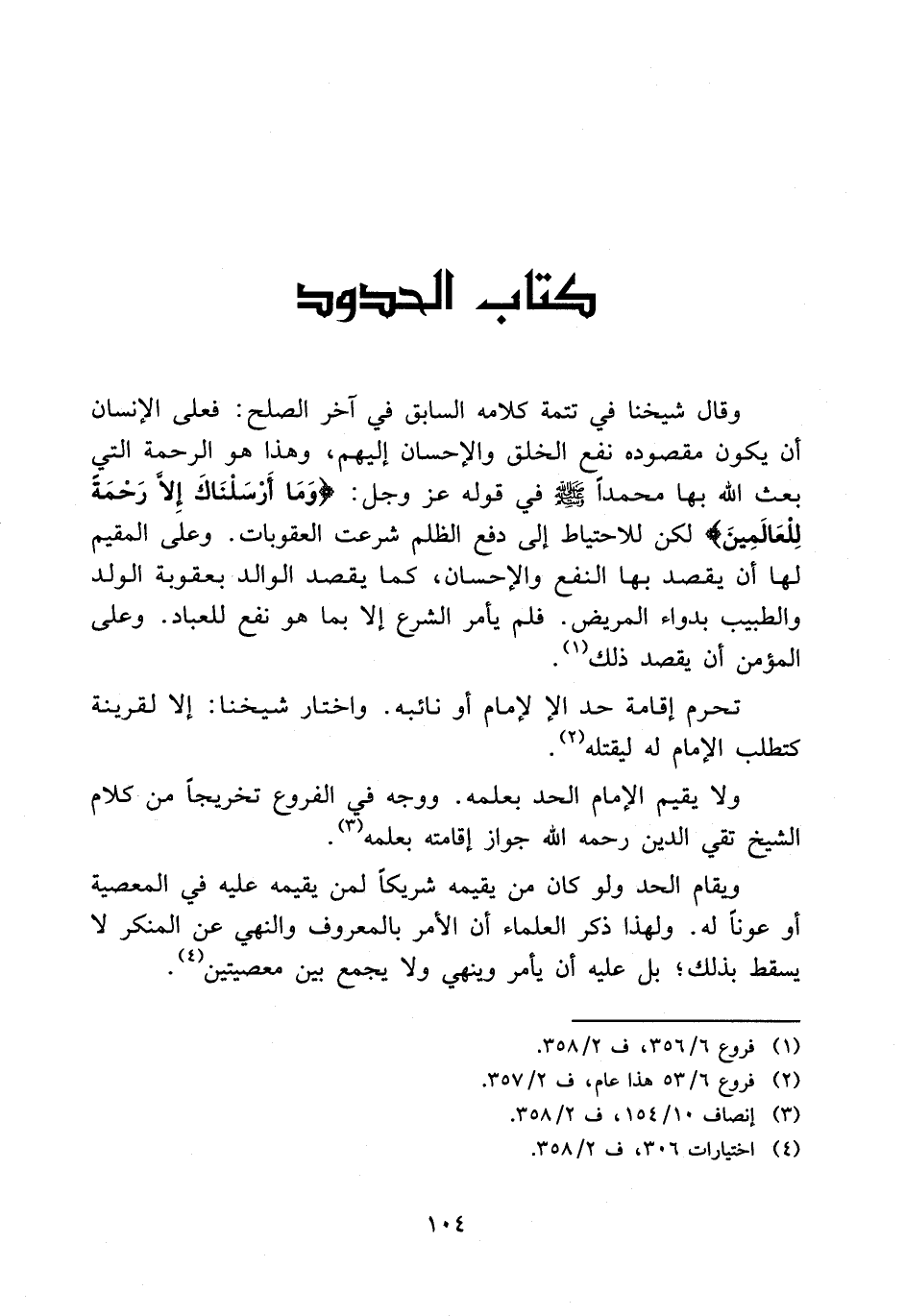 وقال شيخنا في تتمة كلامه السابق في آخر الصلح، فعلى الإنسان أن يكون مقصوده نفع الخلق والإحسان إليهم، وهذا هو الرحمة التي بعث الله بها محمدا - صلى الله عليه وسلم - في قوله عز وجل {وَمَا أَرْسَلْنَاكَ إِلَّا رَحْمَةً لِلْعَالَمِينَ} لكن للاحتياط إلى دفع الظلم شرعت العقوبات، وعلى المقيم لها أن يقصد بها النفع والإحسان، كما يقصد الولد بعقوبة الولد والطيب بدواء المريض، فلم يأمر الشرع إلا بما هو نفع للعباد، وعلى المؤمن أن يقصد ذلك (1) .