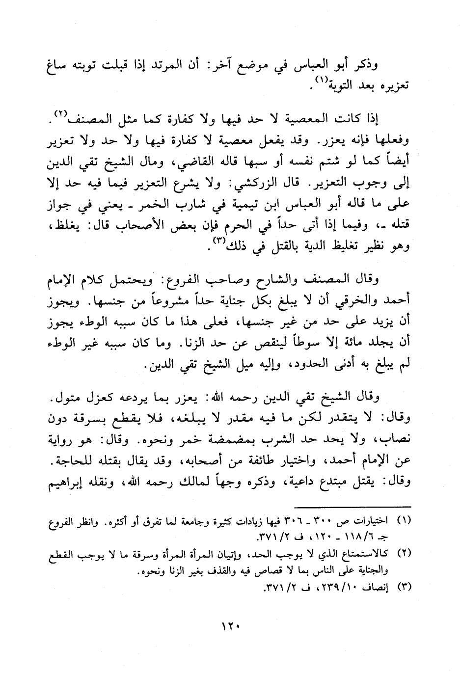(1) اختيارات (300-306) فيها زيادات كثيرة وجامعة لما تفرق أو أكثره، وانظر الفروع (6/ 118-120) ، ف (2/ 371) ,.