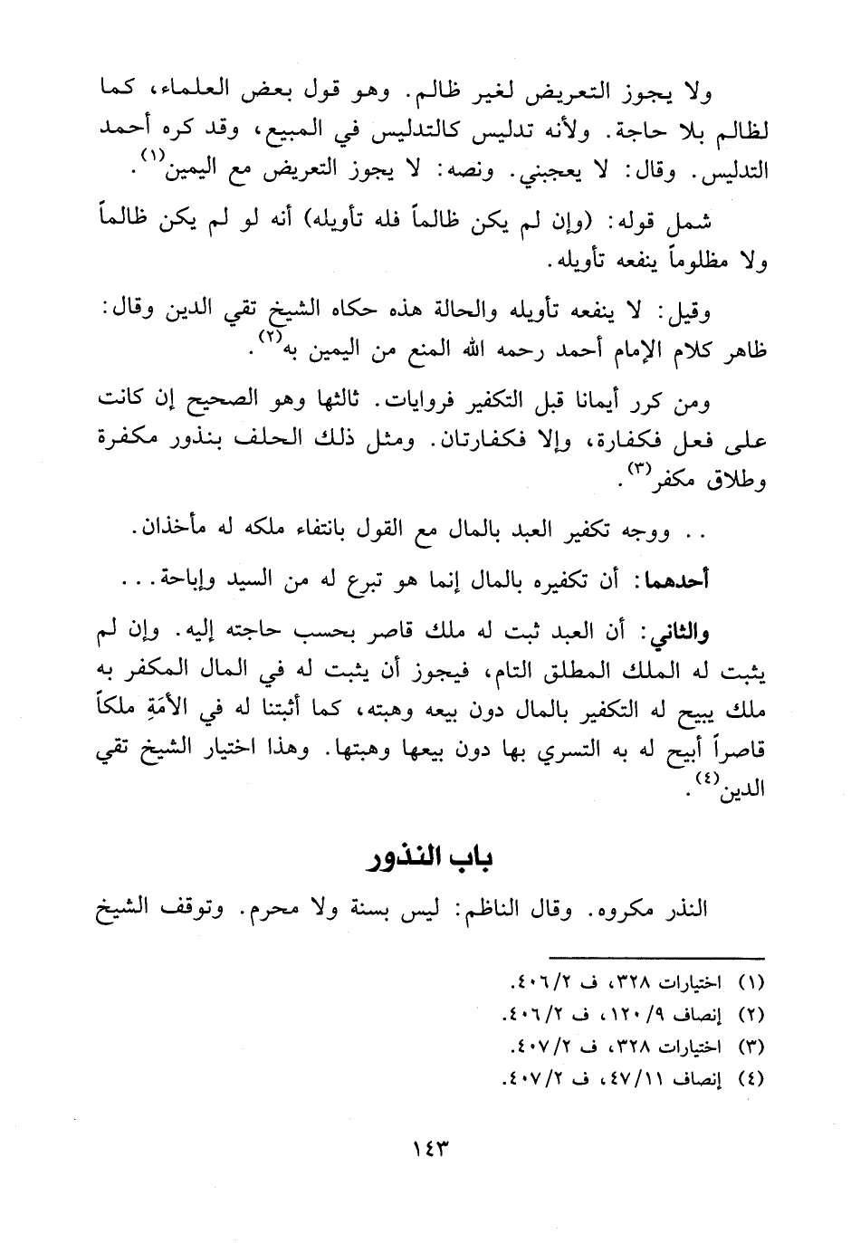 والثاني: أن العبد ثبت له ملك قاصر بحسب حاجته إليه، وإن لم يثبت له الملك المطلق التام، فيجوز أن يثبت له في المال المكفر به ملك يبيح له التكفير بالمال دون بيعه وهبته، كما أثبتنا له في الأمة ملكا قاصرا أبيح له به التسري بها دون بيعها وهبتها، وهذا اختيارا الشيخ تقي الدين (4) .