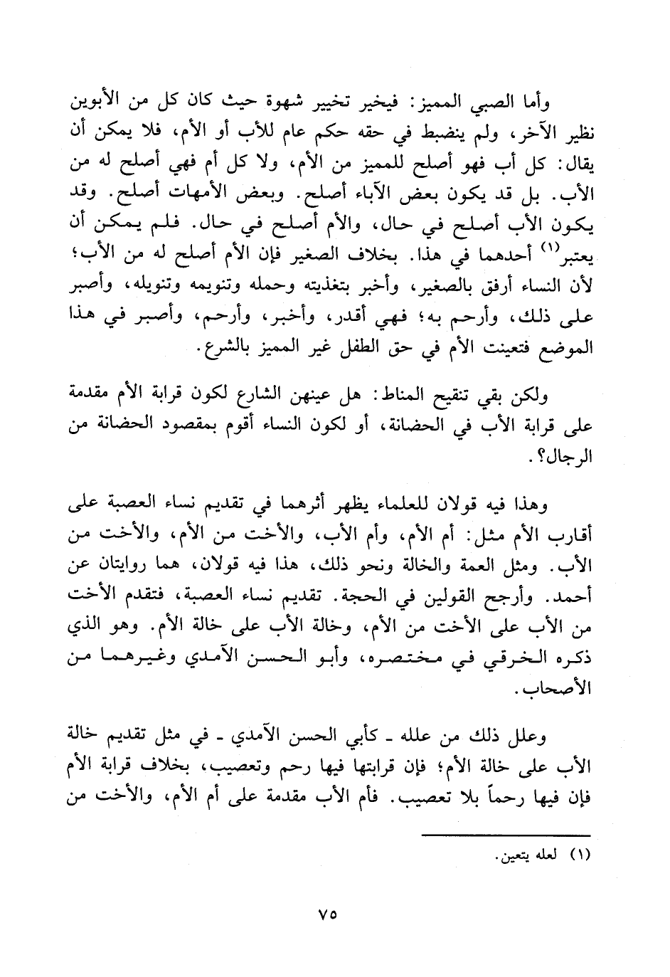 وعلل ذلك من علله -كأبي الحسن الآمدي- في مثل تقديم خالة الأب على خالة الأم؛ فإن قرابتها فيها رحم وتعصيب، بخلاف قرابة الأم فإن فيها رحما بلا تعصيب، فأم الأب مقدمة على أم الأم، والأخت من