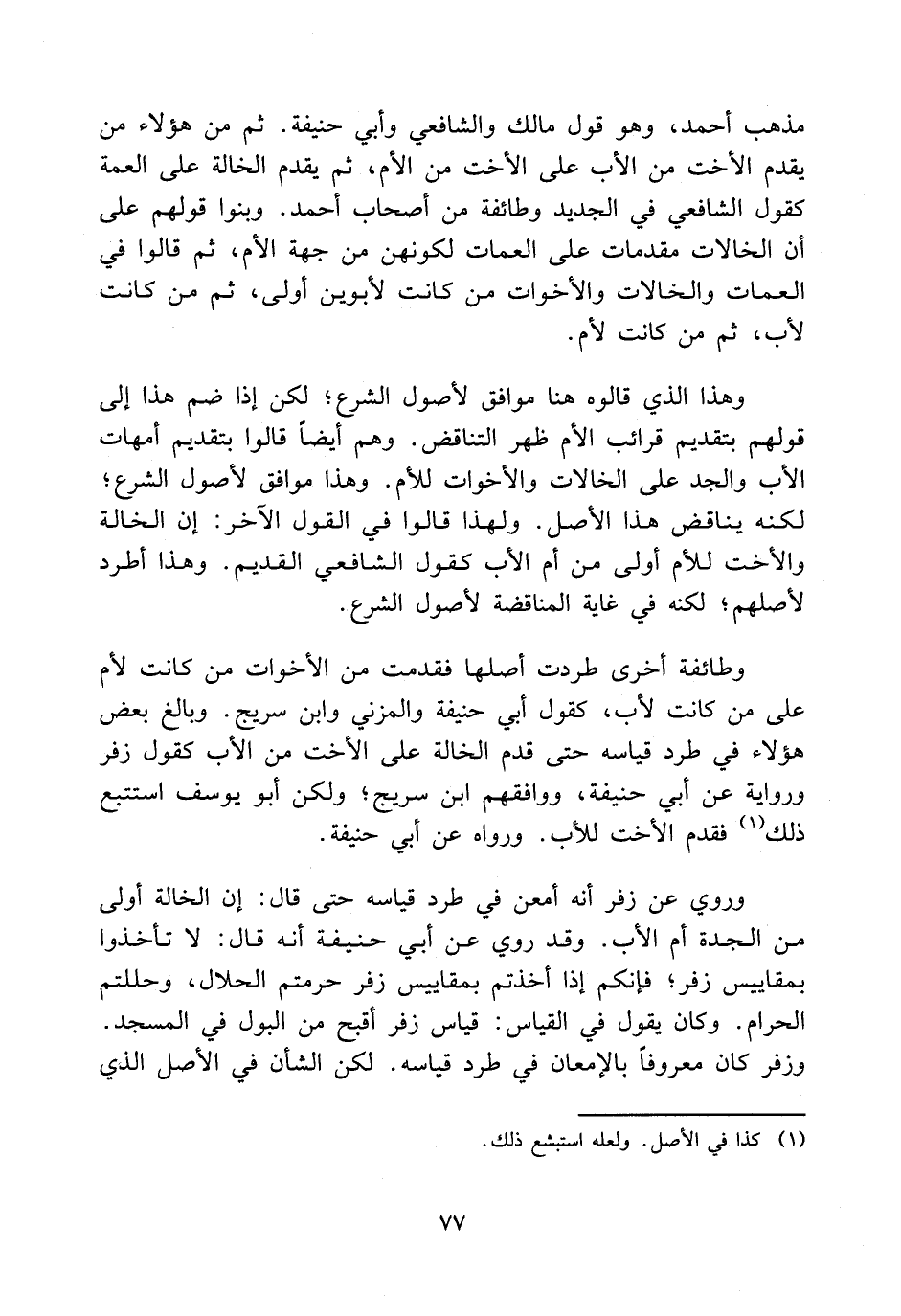 وطائفة أخرى طردت أصلها فقدمت من الأخوات من كانت لأم على من كانت لأب، كقول أبي حنيفة والمزني وابن سريج وبالغ بعض هؤلاء في طرد قياسه حتى قدم الخالة على الأخت من الأب كقول زفر ورواية عن أبي حنيفة، وافقهم ابن سريج، ولكن أبو يوسف استتبع ذلك (1) فقدم الأخت للأب، ورواه عن أبي حنيفة.