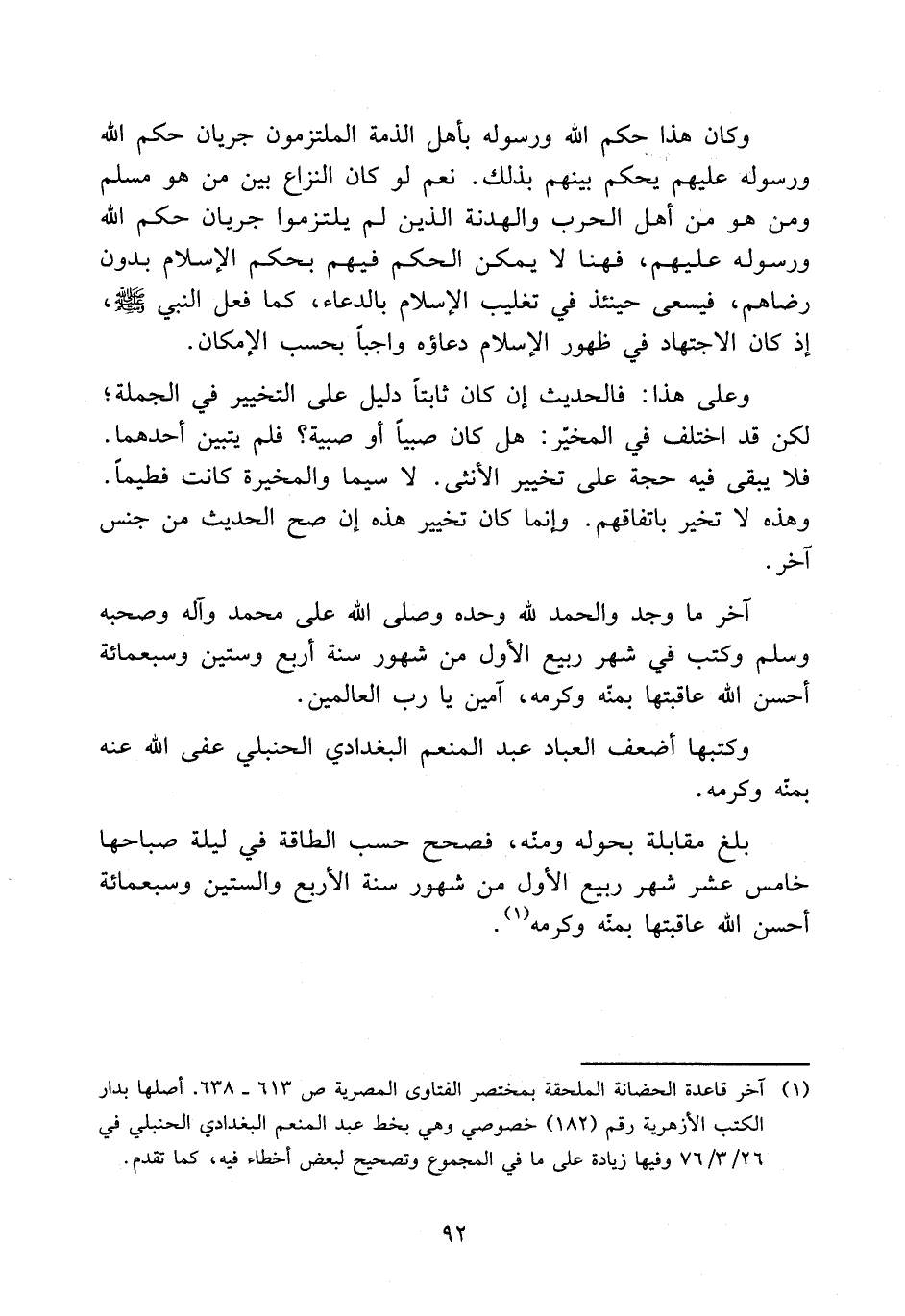 وكتبها أضعف العباد عبد المنعم البغدادي الحنبلي عفا الله عنه بمنه وكرمه.