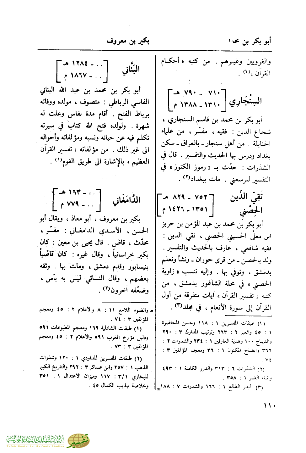 (¬1) طبقات المفسرين 1: 118 وحسن المحاضرة 1: 45 والعبر 2: 263 وترتيب المدارك 3: 290 والديباج 100 وهدية العارفين 1: 234 والشذرات 2: 366 وإيضاح المكنون 1: 36 ومعجم المؤلفين 3: