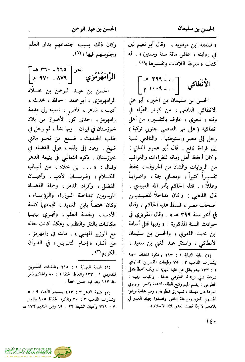 (¬1) غاية النهاية 1: 215 وطبقات المفسرين للداودي 1: 133 واتعاظ الحنفا 2: 80 والحاكم بأمر الله 113 وهو فيه حسين خطأ.