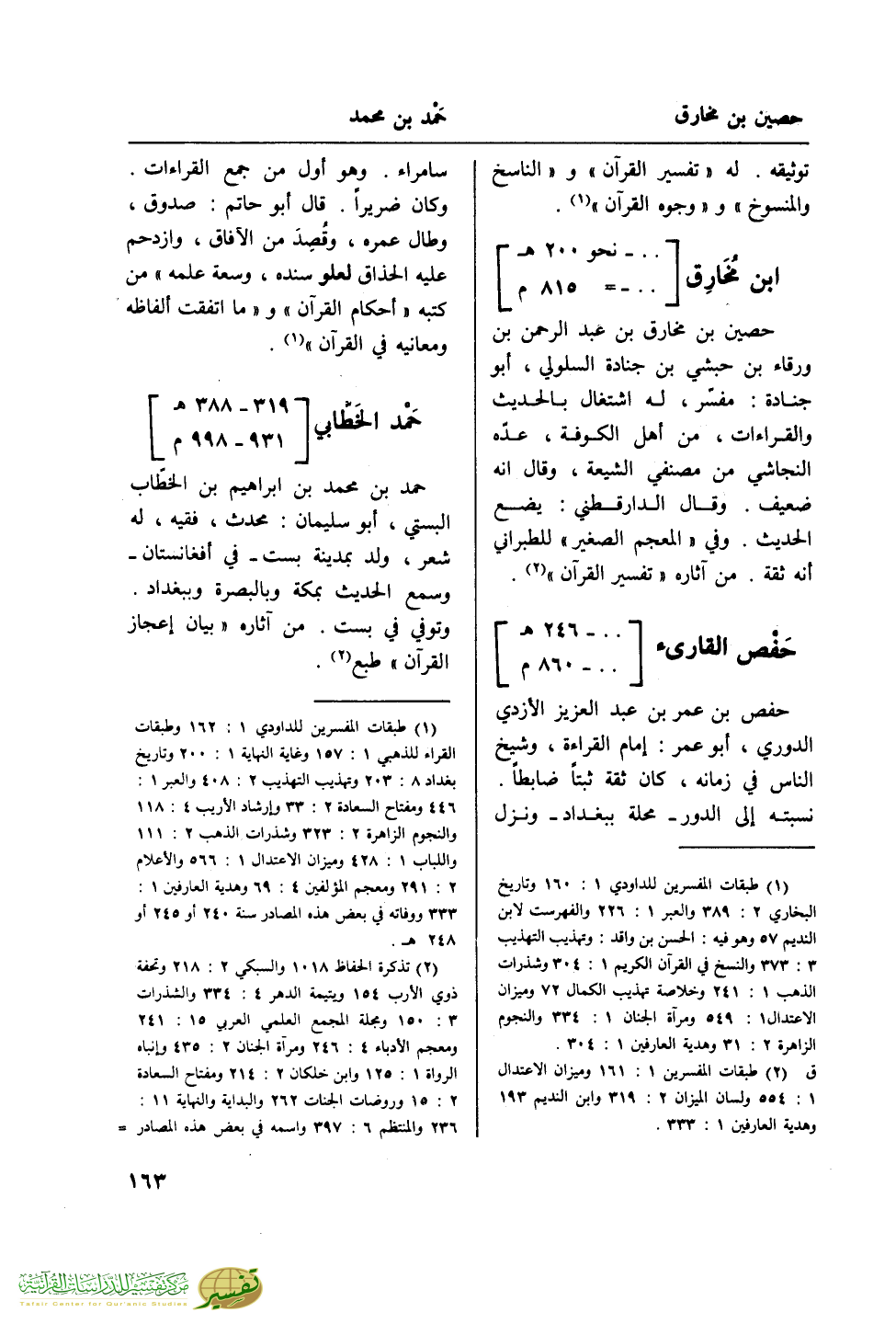(¬2) طبقات المفسرين 1: 161 وميزان الاعتدال 1: 554 ولسان الميزان 2: 319 وابن النديم 193 وهدية العارفين 1: 333.