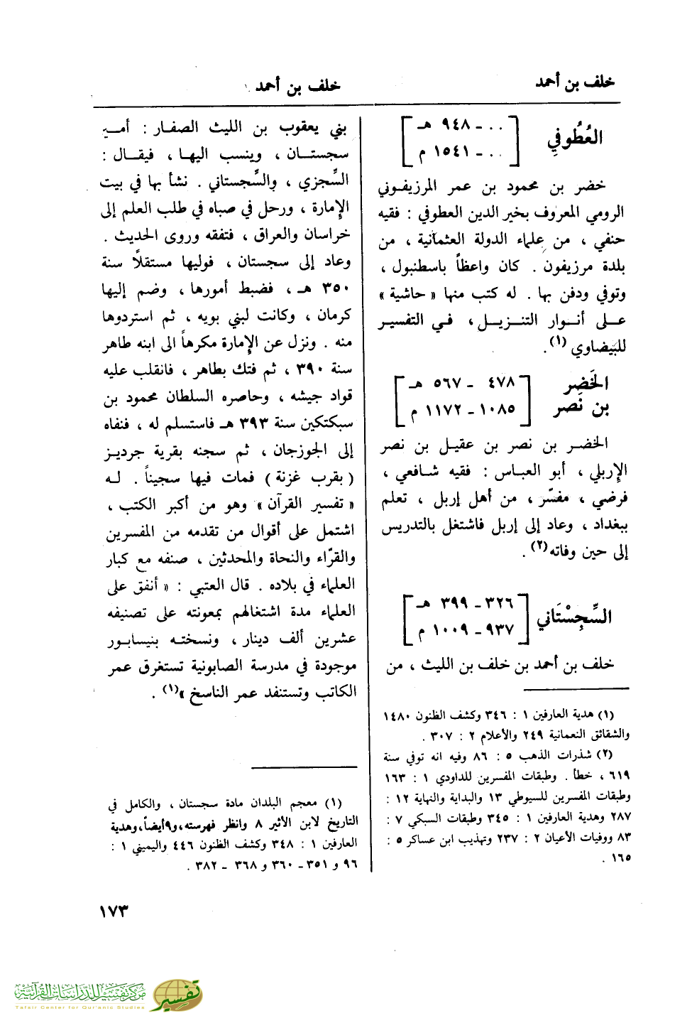 (¬2) شذرات الذهب 5: 86 وفيه أنه توفي سنة 619، خطأ. وطبقات المفسرين للداودي 1: 163 وطبقات المفسرين للسيوطى 13 والبداية والنهاية 12: 287 وهدية العارفين 1: 345 وطبقات السبكي 7: 83 ووفيات الأعيان 2: 237 وتهذيب ابن عساكر 5: 165.