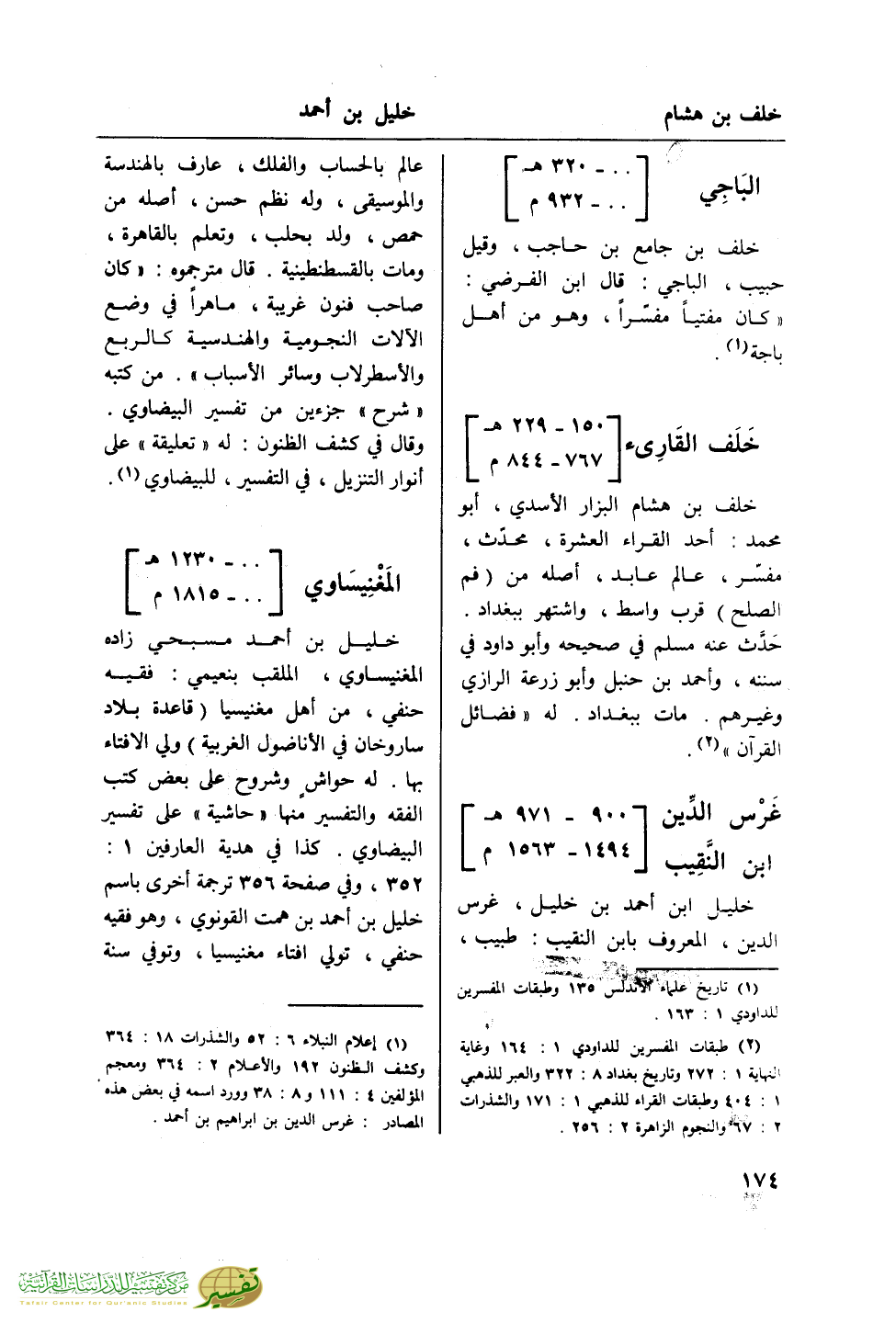 (¬2) طبقات المفسرين للداودي 1: 164 وغاية النهاية 1: 272 وتاريخ بغداد 8: 322 والعبر للذهبي 1: 404 وطبقات القراء للذهبي 1: 171 والشذرات 2: 72 والنوحم الزاهرة 2: 256.