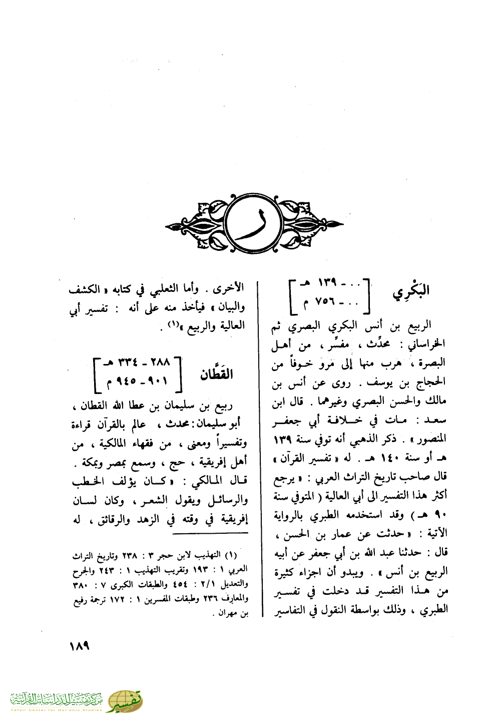 (¬1) التهذيب لابن حجر 3: 238 وتاريخ التراث العربي 1: 193 وتقريب التهذيب 1: 243 والجرح والتعديل 1/ 2: 454 والطبقات الكبرى 7: 380 والمعارف 236 وطبقات المفسرين 1: 172 ترجمة رفيع بن مهران.
