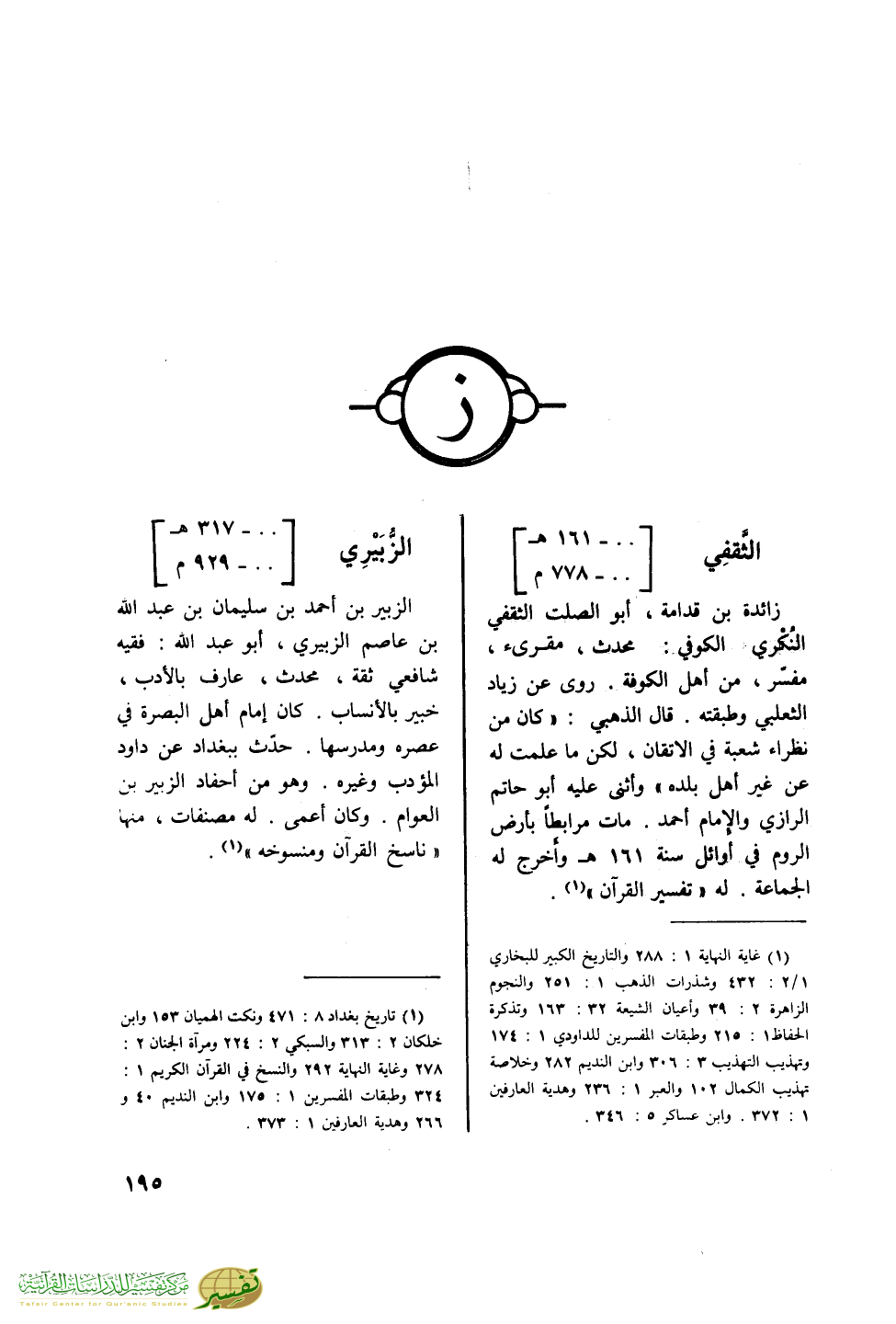 (¬1) غاية النهاية 1: 288 والتاريخ الكبير للبخاري 2/ 1: 432 وشذرات الذهب 1: 251 والنجوم الزاهرة 2: 39 وأعيان الشيعة 32: 163 وتذكرة الحفاظ 1: 215 وطبقات المفسرين للداودي 1: 174 وتهذيب التهذيب 3: 306 وابن النديم 282 وخلاصة تهذيب الكمال 102 والعبر 1: 236 وهدية العارفين 1: 372. وابن عساكر 5: 346.