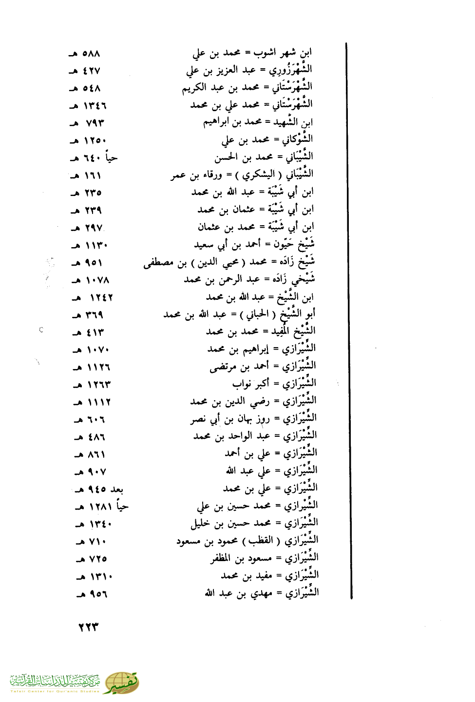 الشيرازي = روز بهان بن أبي نصر … 606 هـ