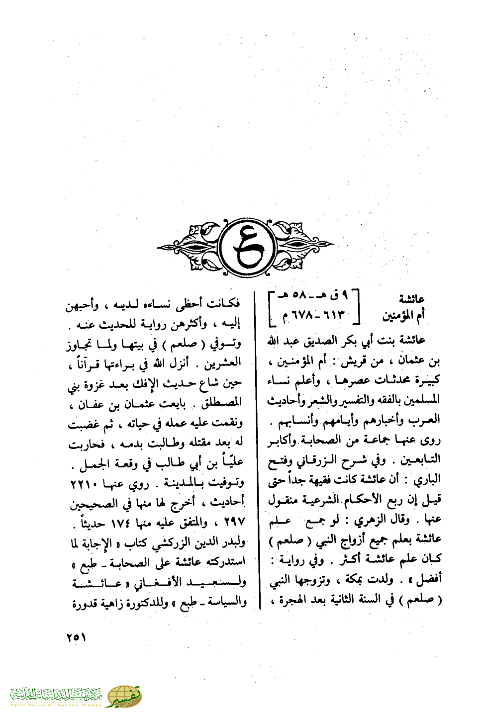 عائشة أم المؤمنين [9 ق هـ - 58 هـ / 613 - 678 م]
