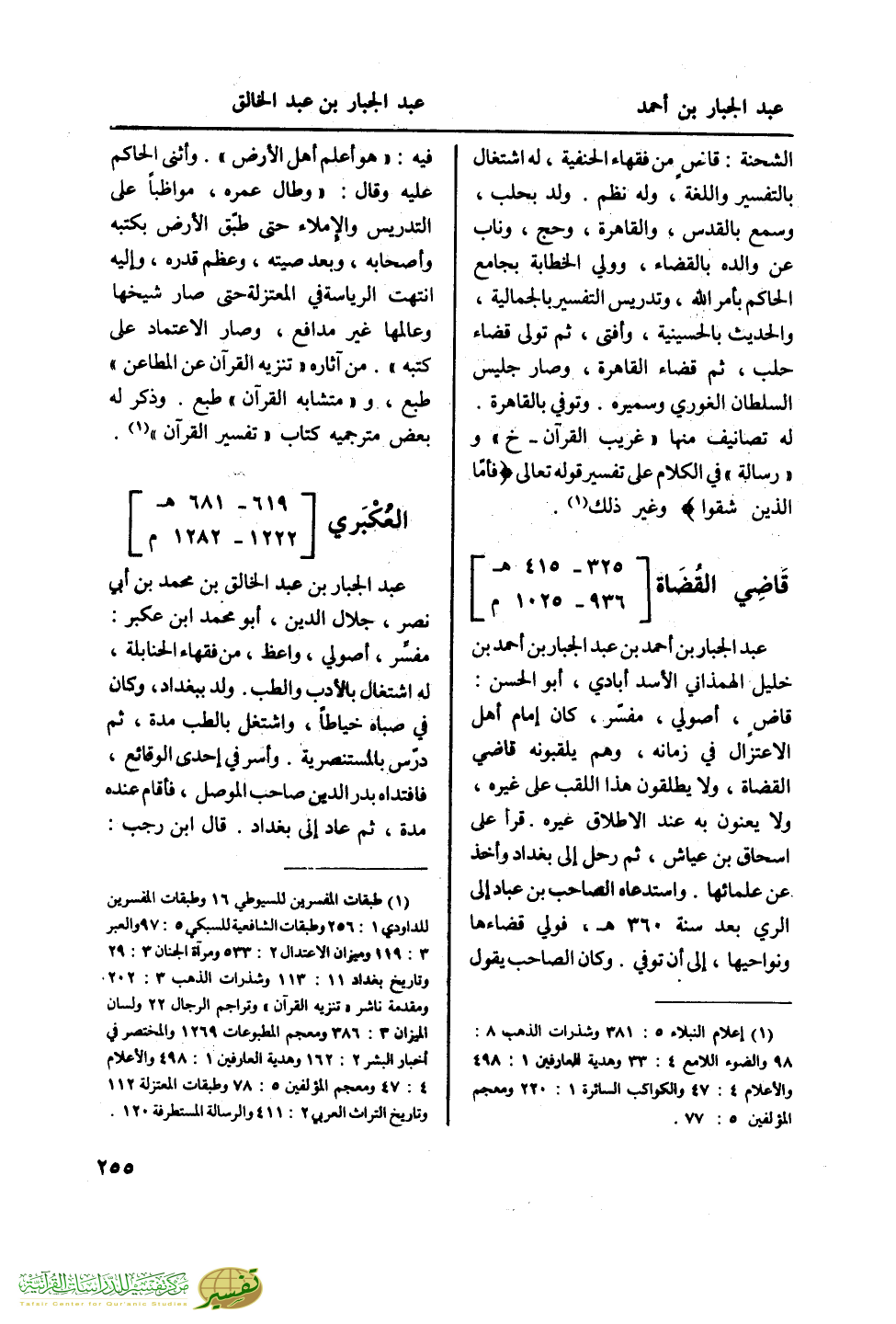 (¬1) طبقات المفسرين للسيوطي 16 وطبقات المفسرين للداودي 1: 206 وطبقات الشافعية للسبكي 5: 97 والعبر 3: 119 وميزان الاعتدال 2: 533 ومرآة الجنان 3: 29 وتاريخ بغداد 11: 113 وشذرات الذهب 3: 202. ومقدمة ناشر "تنزيه القرآن" وتراجم الرجال 22 ولسان الميزان 3: 386 ومعجم المطبوعات 1269 والمختصر في أخبار البشر 2: 162 وهدية العارفين 1: 498 والأعلام 4: 47 ومعجم المؤلفين 5: 78 وطبقات المعتزلة 112 وتاريخ التراث العربي 2: 411 والرسالة المستطرفة 120.