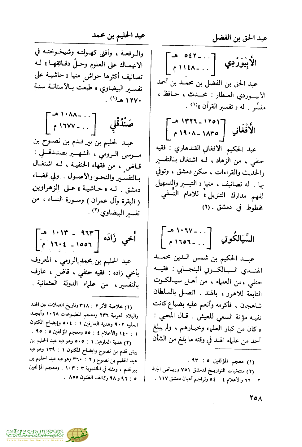 (¬2) هدية العارفين 1: 505 وهو فيه عبد الحليم بن بيش قدم بن نصوح وإيضاح المكنون 1: 139 وهو فيه عبد الحليم بن نصوح و 2: 360 وهو فيه عبد الحليم بن بير قدم، ومثله في الخديوية 3: 103. ومعجم المؤلفين 5: 96 و 98 وكشف الظنون 855.
