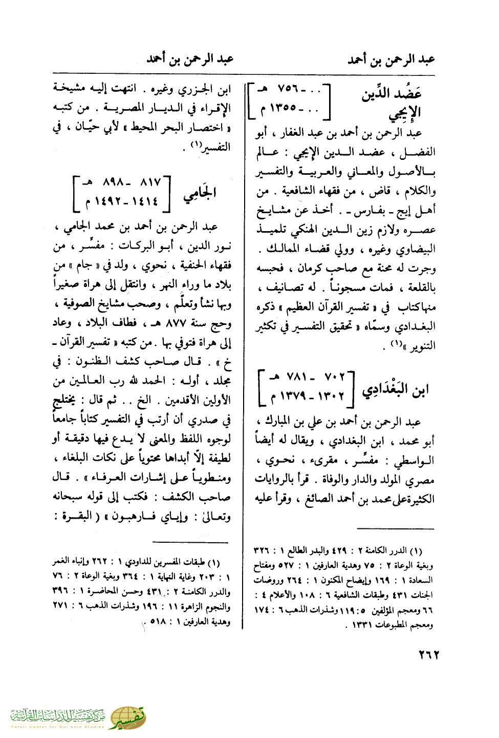 (¬1) طبقات المفسرين للداودي 1: 262 وإنباء الغمر 1: 253 وغاية النهاية 1: 364 وبغية الوعاة 2: 76 والدرر الكامنة 2: 431 وحسن المحاضرة 1: 396 والنجوم الزاهرة 11: 196 وشذرات الذهب 6: 271 وهدية العارفين 1: 518.