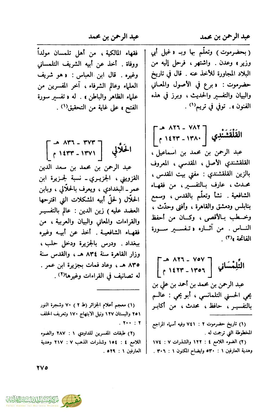 (¬2) طبقات المفسرين للداودي 1: 287 والضوء اللامع 4: 154 وشذرات الذهب 7: 217 وهدية العارفين 1: 529.