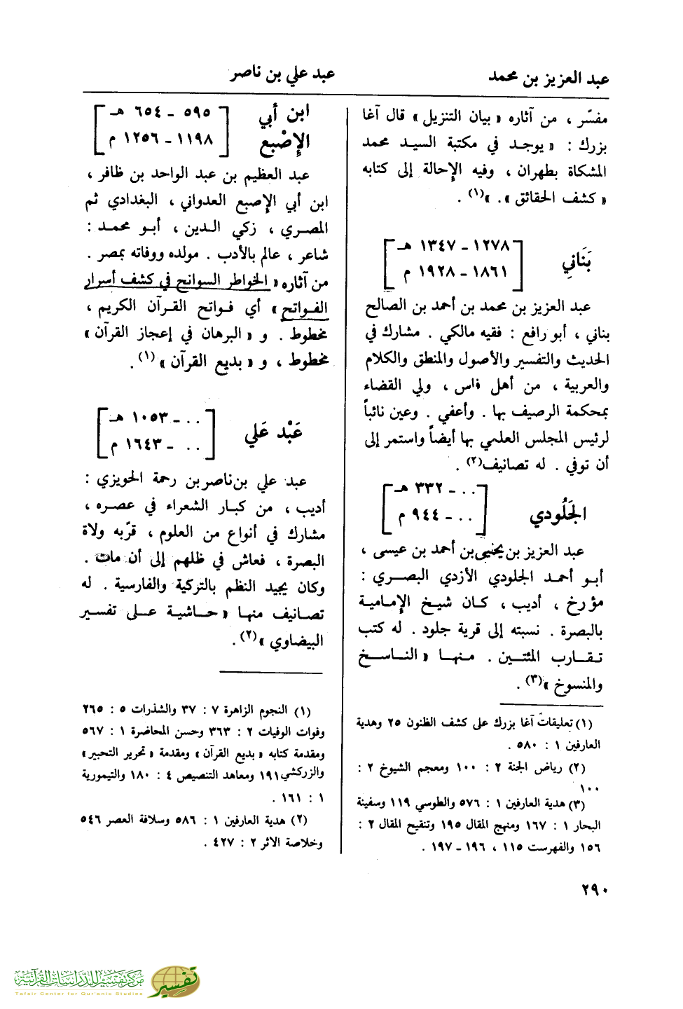 (¬1) النجوم الزاهرة 7: 37 والشذرات 5: 265 وفوات الوفيات 2: 363 وحسن المحاضرة 1: 567 ومقدمة كتابه "بديع القرآن"، ومقدمة "تحرير التحبير" والزركشي 191 ومعاهد التنصيص 4: 180 والتيمورية