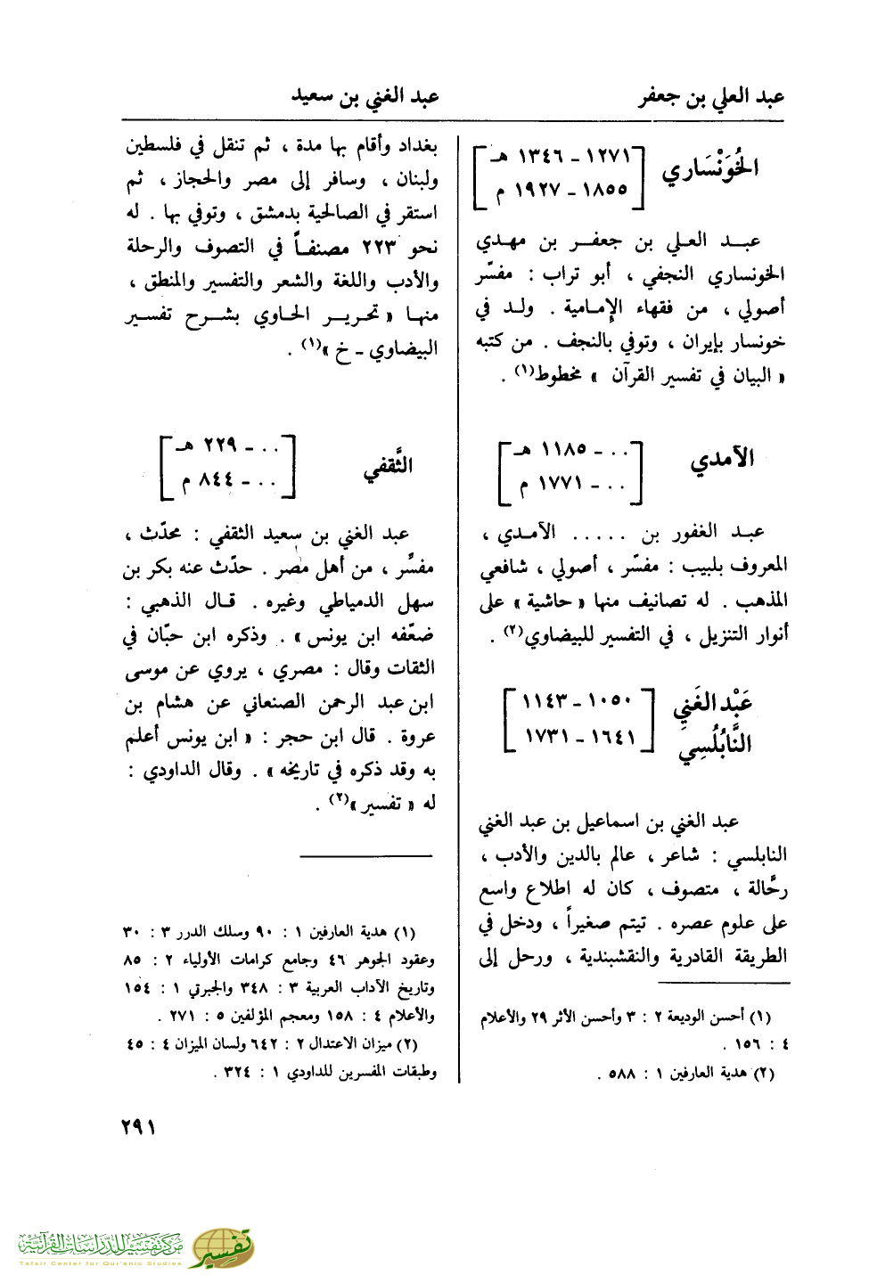 مفسر، أصولي، شافعي المذهب. له تصانيف منها "حاشية" على أنوار التنزيل، في التفسير للبيضاوي (¬2). عبد الغني النابلسي 1050 - 1143 هـ / 1641 - 1731 م]